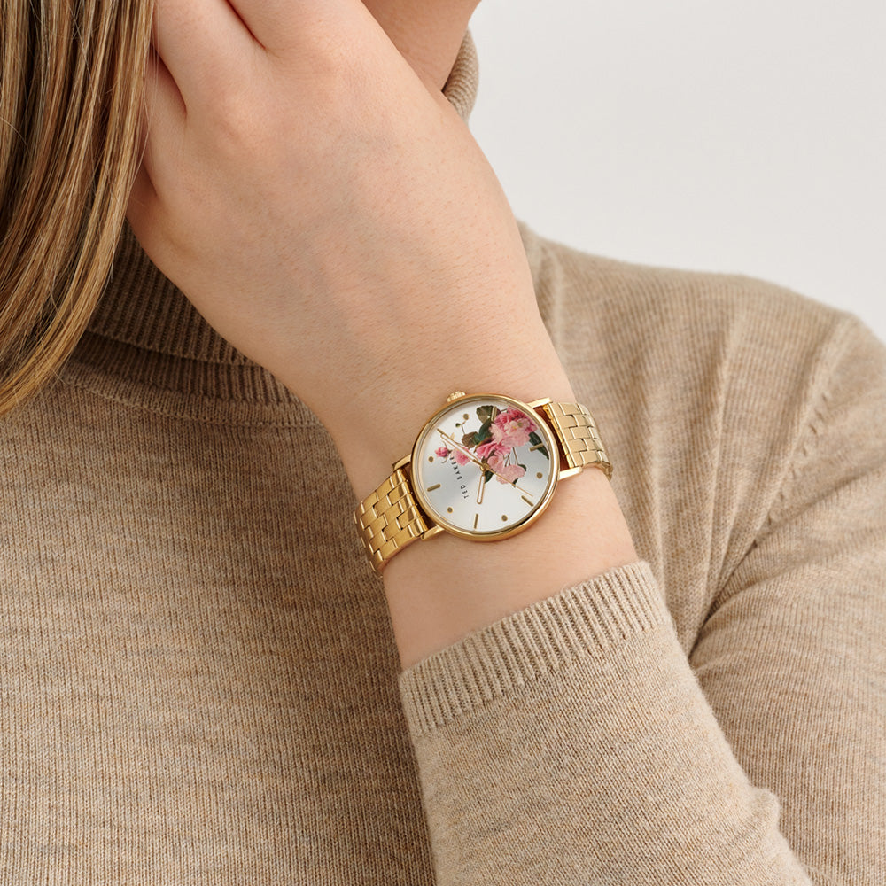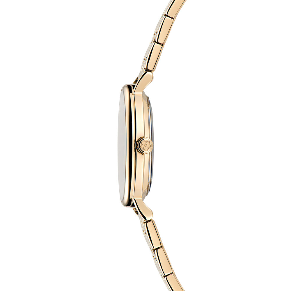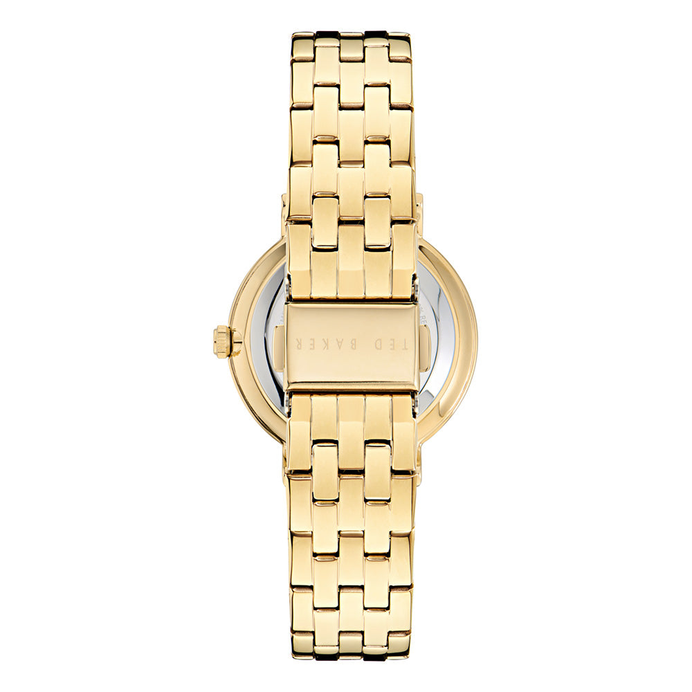 Make a bold fashion statement with this eye-catching watch featuring a yellow gold recycled stainless steel case and a printed dial. The matching yellow gold bracelet completes the look, making it the perfect accessory for stylish individuals.