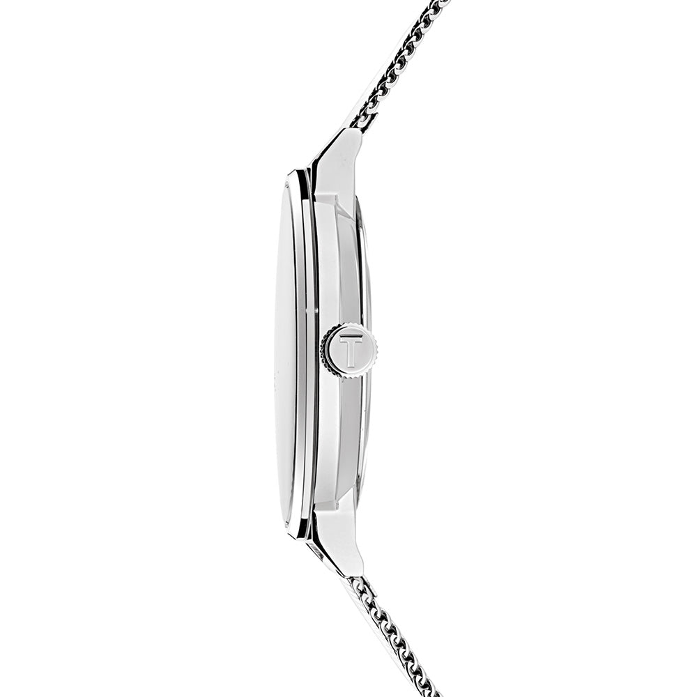 Add a pop of color to your look with this chic watch featuring a vibrant blue dial and sleek silver mesh band bracelet. The modern design and impeccable craftsmanship make it a versatile accessory for any occasion.