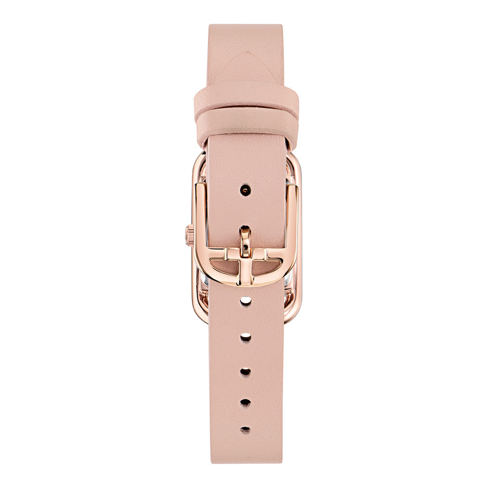 Elevate your look with this elegant watch featuring a rose gold case and a charming pink dial. The pink leather strap adds a feminine touch, making it the perfect accessory for both casual and formal occasions.