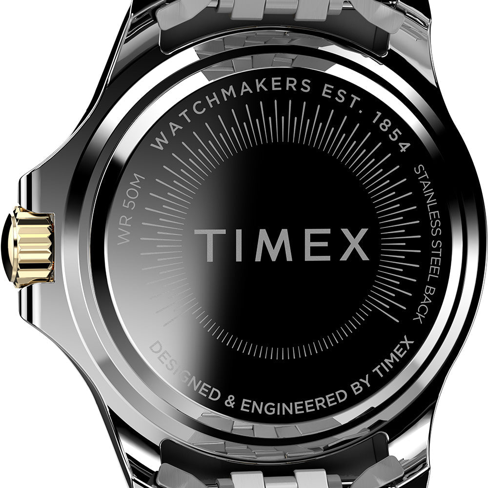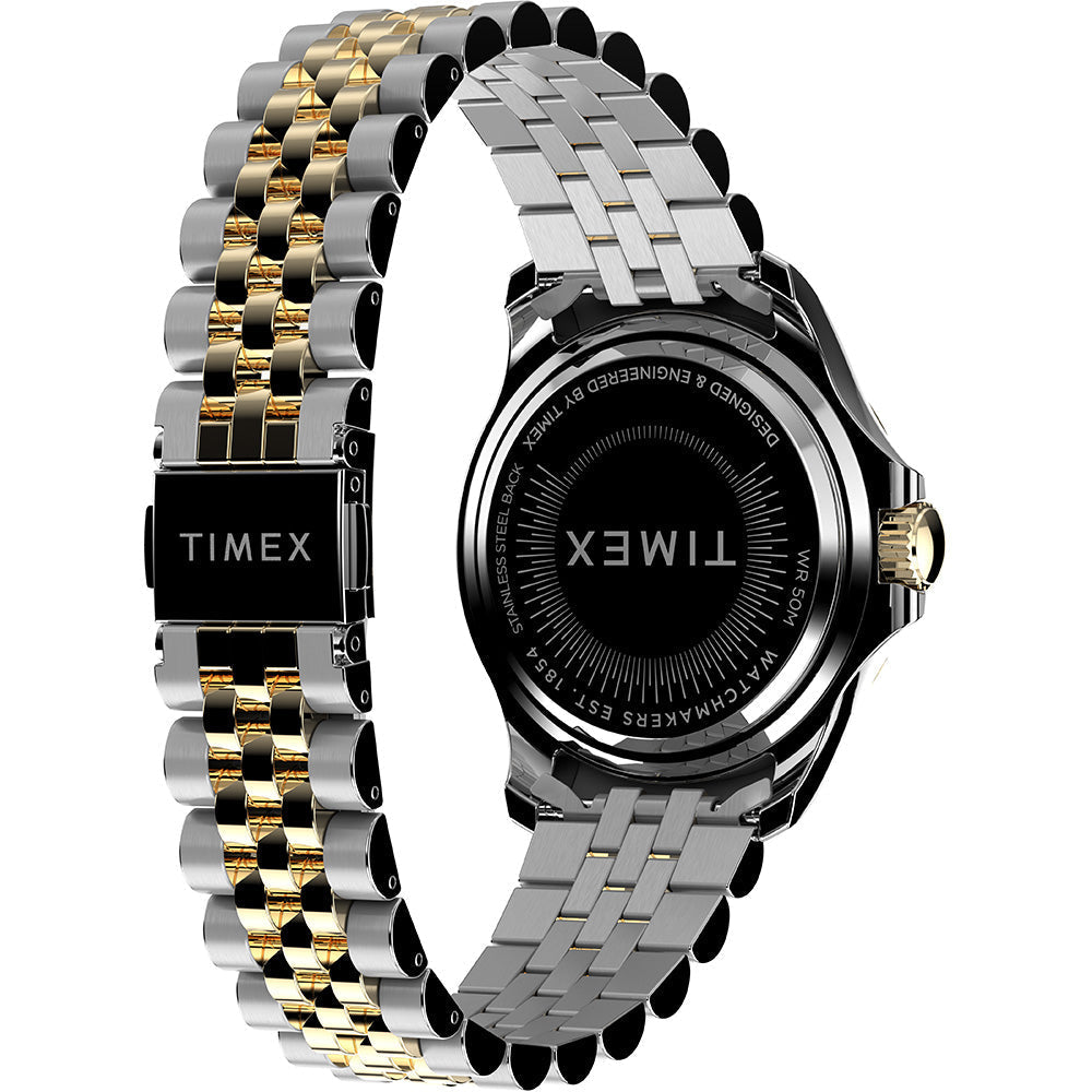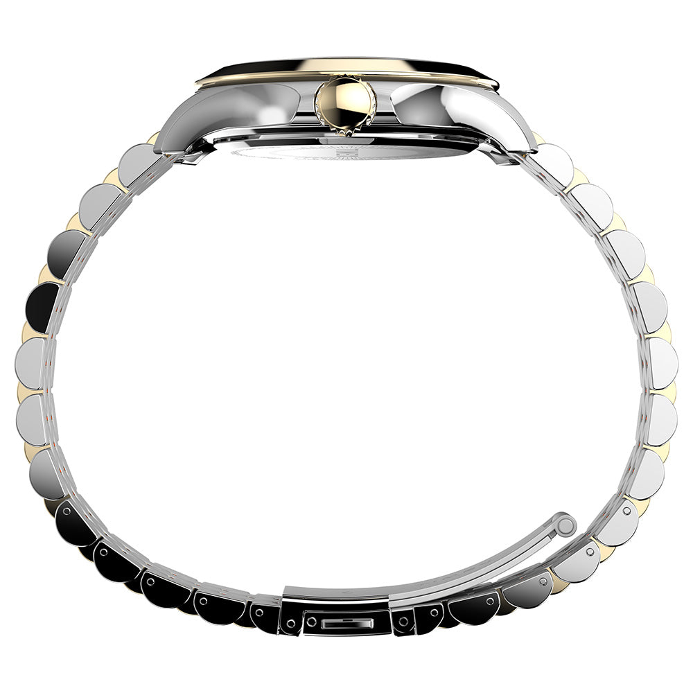 There’s power in simplicity. A 38mm case and sleek stainless-steel bracelet appear in polished tones of silver and gold on this chic timepiece, while silver crystal indices illuminate the dial with a hint of sparkle. Radiant and refined, our Kaia’s eye-catching luster and slightly large silhouette carry a bold confidence that’ll have you walking a little taller and holding your head a little higher.