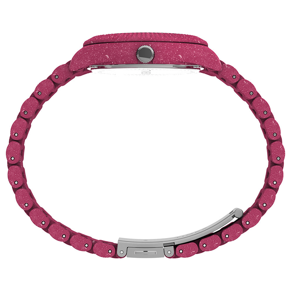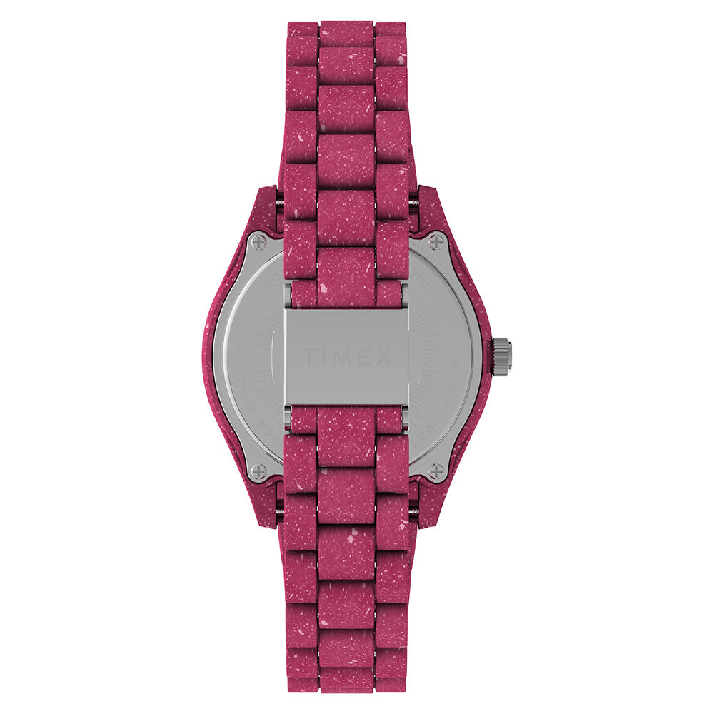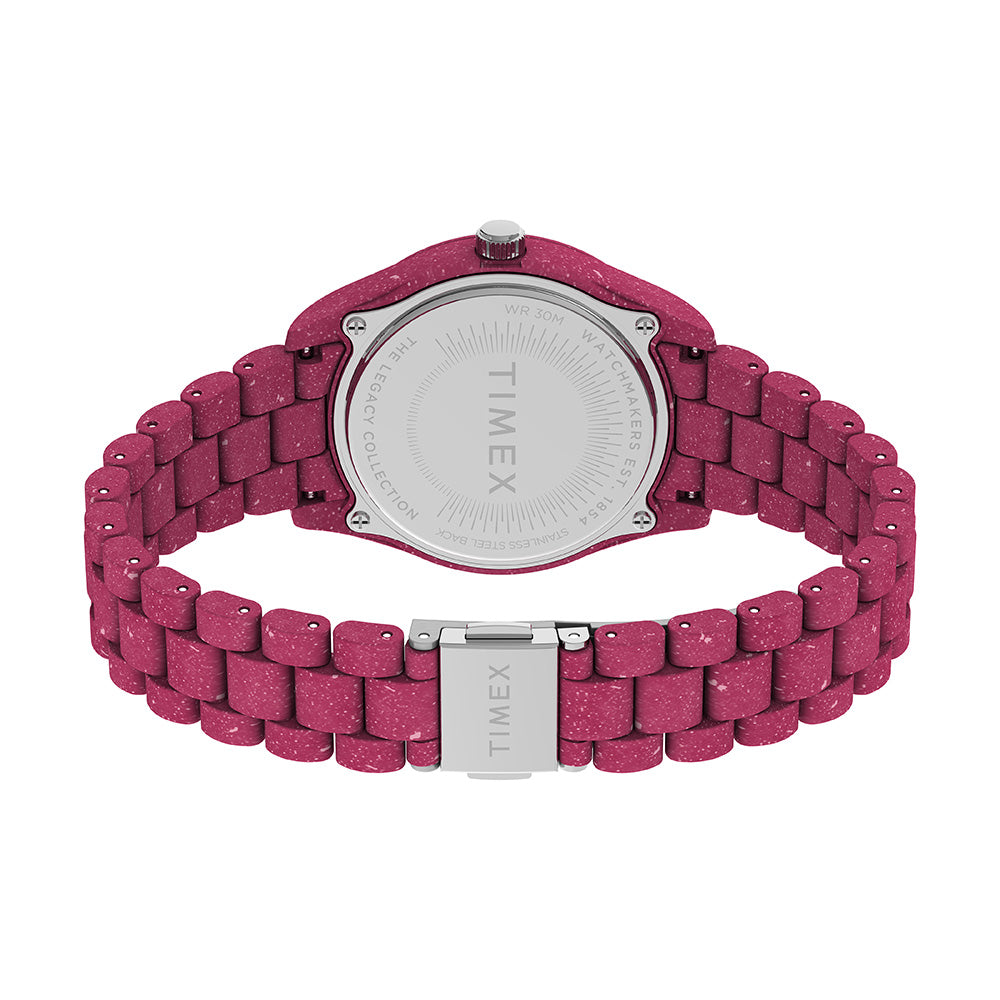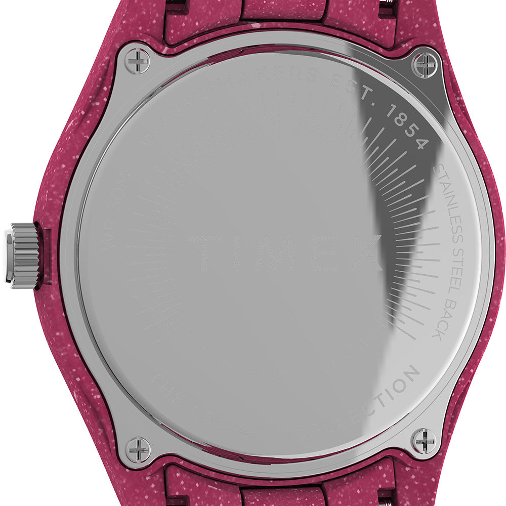 We’re redesigning our past to take care of our future with the Legacy Ocean collection. Featuring a pink case, bracelet, and dial crafted from upcycled, ocean-bound plastic, this remarkable wristwatch is the first Timex of its kind. Our partnership with #tide™ means its journey from waste to wrist begins with fishermen collecting plastic from the coastlines; the waste is washed and shredded before making its way to Switzerland via carbon-neutral transportation; and finally, it’s repurposed on-site, resulting in a premium, sustainable material. Legacy Ocean’s marine-inspired dial features unique flakes of shredded material, while the classic Legacy construction itself honors our rich legacy in traditional watchmaking. Navigate uncharted waters ahead with all the trusted functionality you’d expect from a Timex—luminant hands and 30 meters of water resistance—and join us in working toward a cleaner tomorrow.