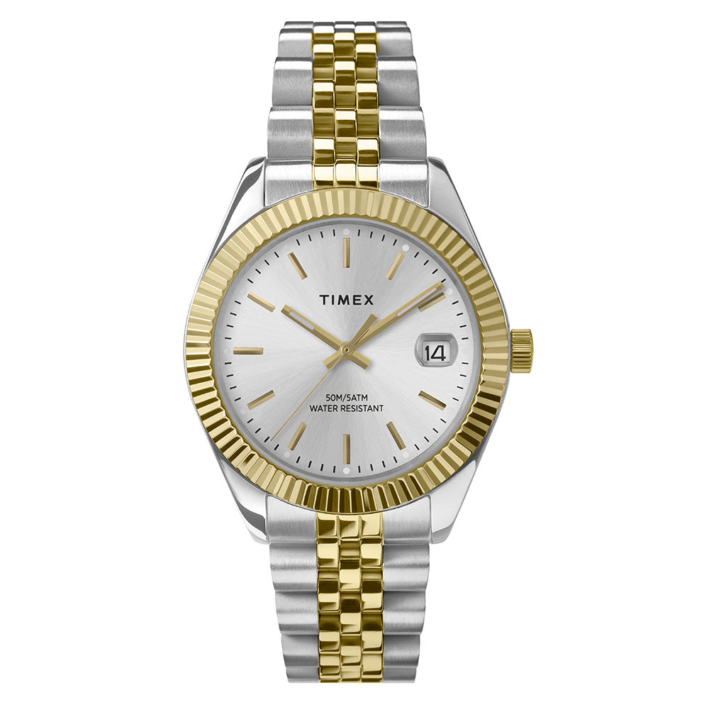 There’s strength in tradition. We’re honoring our 1854 roots as the Waterbury Clock Company and the strong women who created our earliest timepieces. Featuring a stainless-steel case and bracelet, along with a silver-tone dial, our Timex Legacy also boasts a practical date function with magnifier and a graceful fluted stainless-steel bezel. It's a 34mm goes-with-everything watch that’s well-suited for everyday wear.
