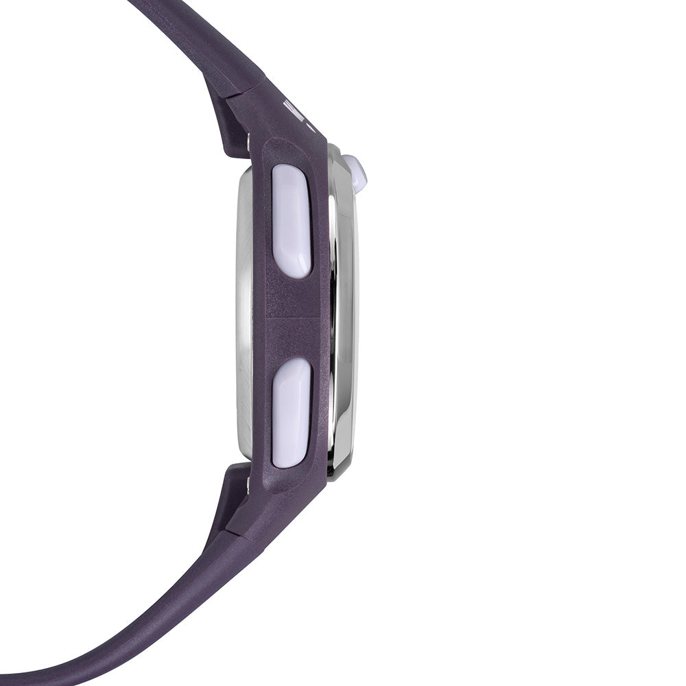 Powerful and feminine, the Ironman® Transit collection is everything you are. This watch is as practical as it is fashionable, with a sleek purple case, purple strap and a silver-tone top ring. Features include a countdown timer, sports stopwatch, customizable alarm and is water resistant up to 100 meters.