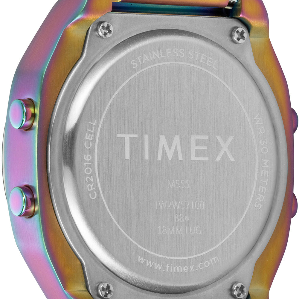 Dive into a world of color and luxe. Our Timex T80 transports you to sun-soaked days on faraway shores with a lens and stainless-steel Perfect Fit™ expansion band in captivating colorways that brighten up all your vacation looks. Other details include all you’d expect from our T80 – a chronograph function, daily alarm, INDIGLO® backlight, and date display. So, claim a sunny spot and surrender to the peaceful rhythm of the tides...you’re on island time now.