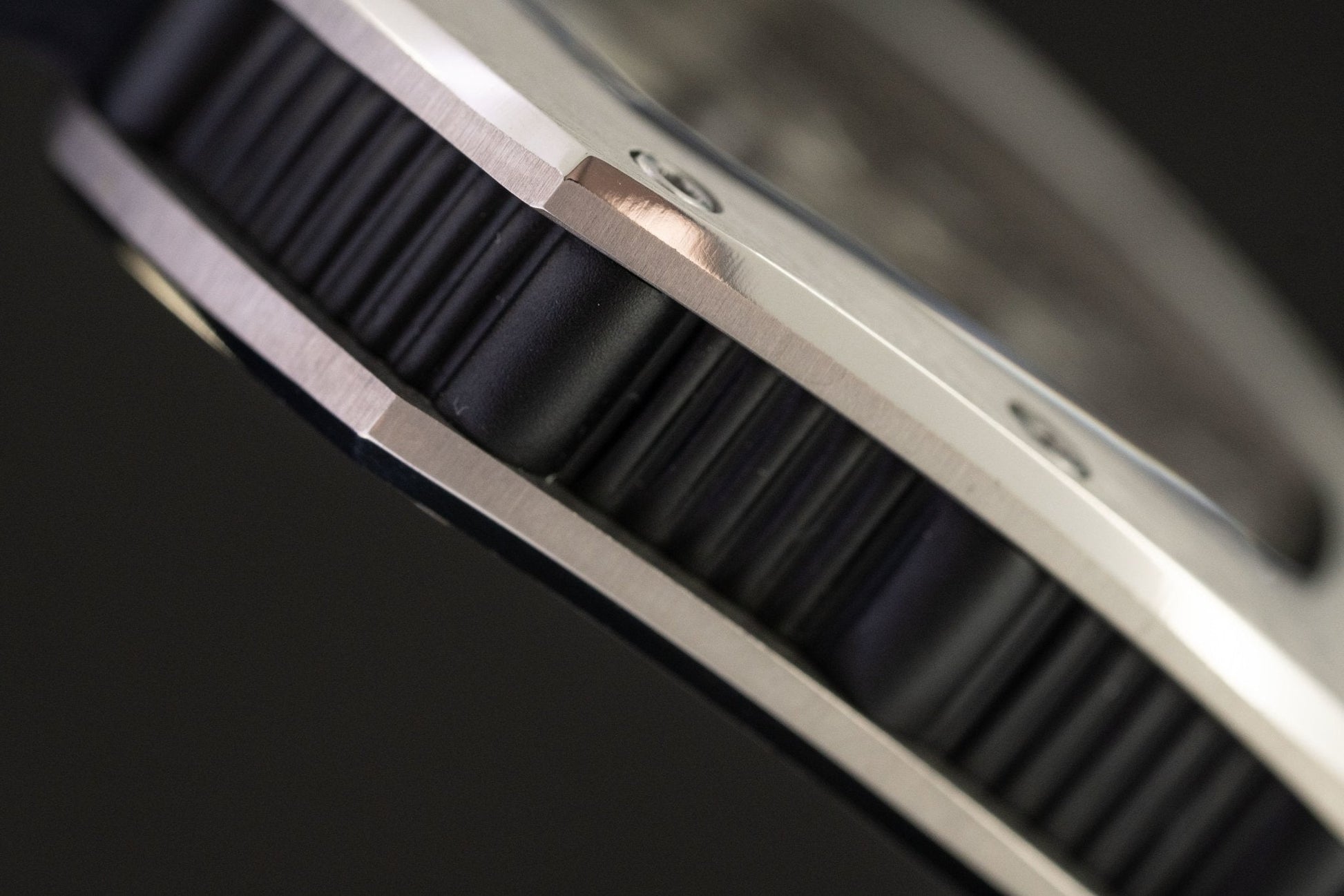 51.5mm x 46mm x 12mm Titanium Base and Bezel with an Anti-Corodal Aluminium Centre held together with 8 Torx Screws. Anti-Reflective Sapphire Crystal. Titanium Crown. Open Sapphire Crystal Case Back