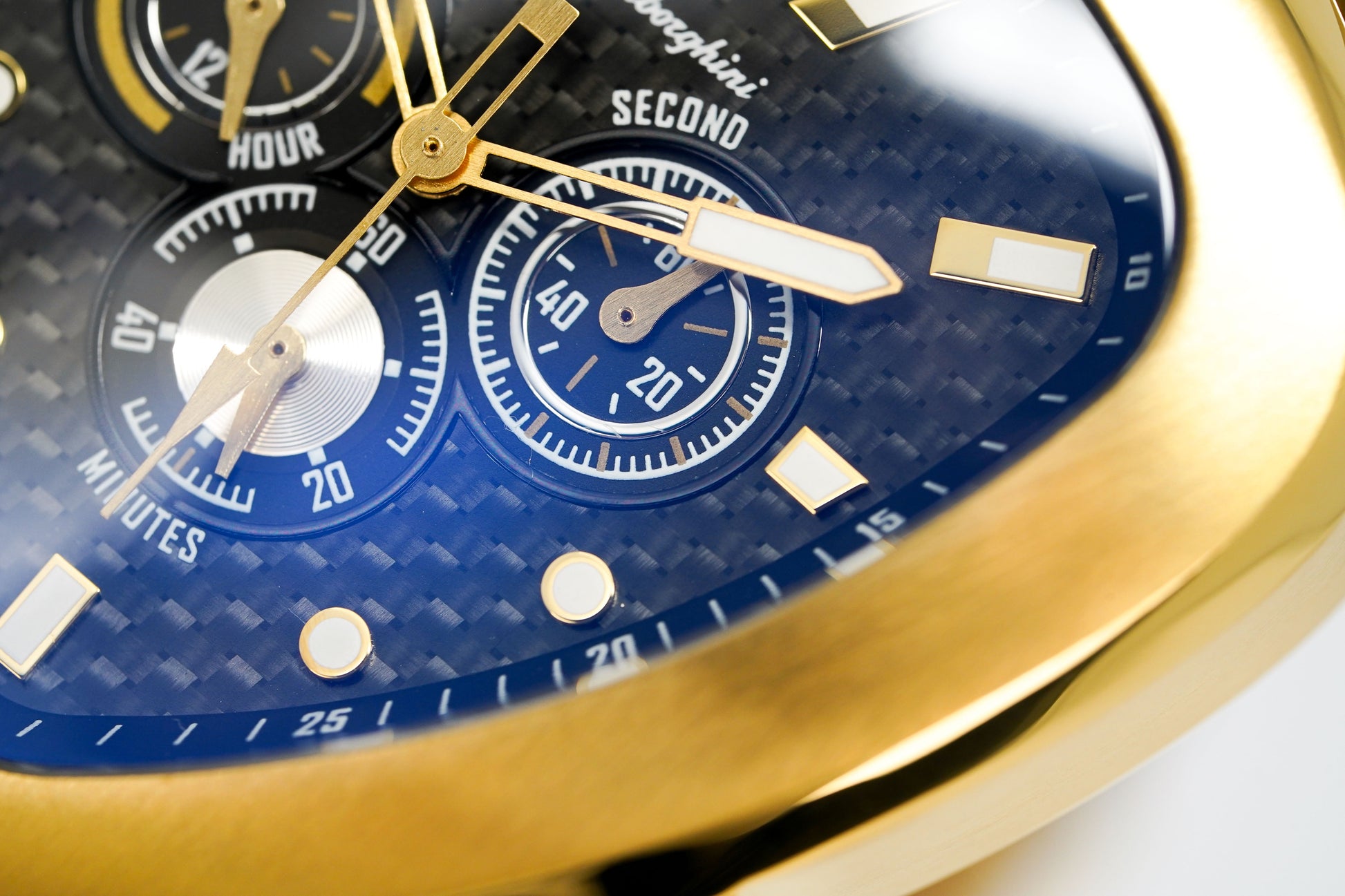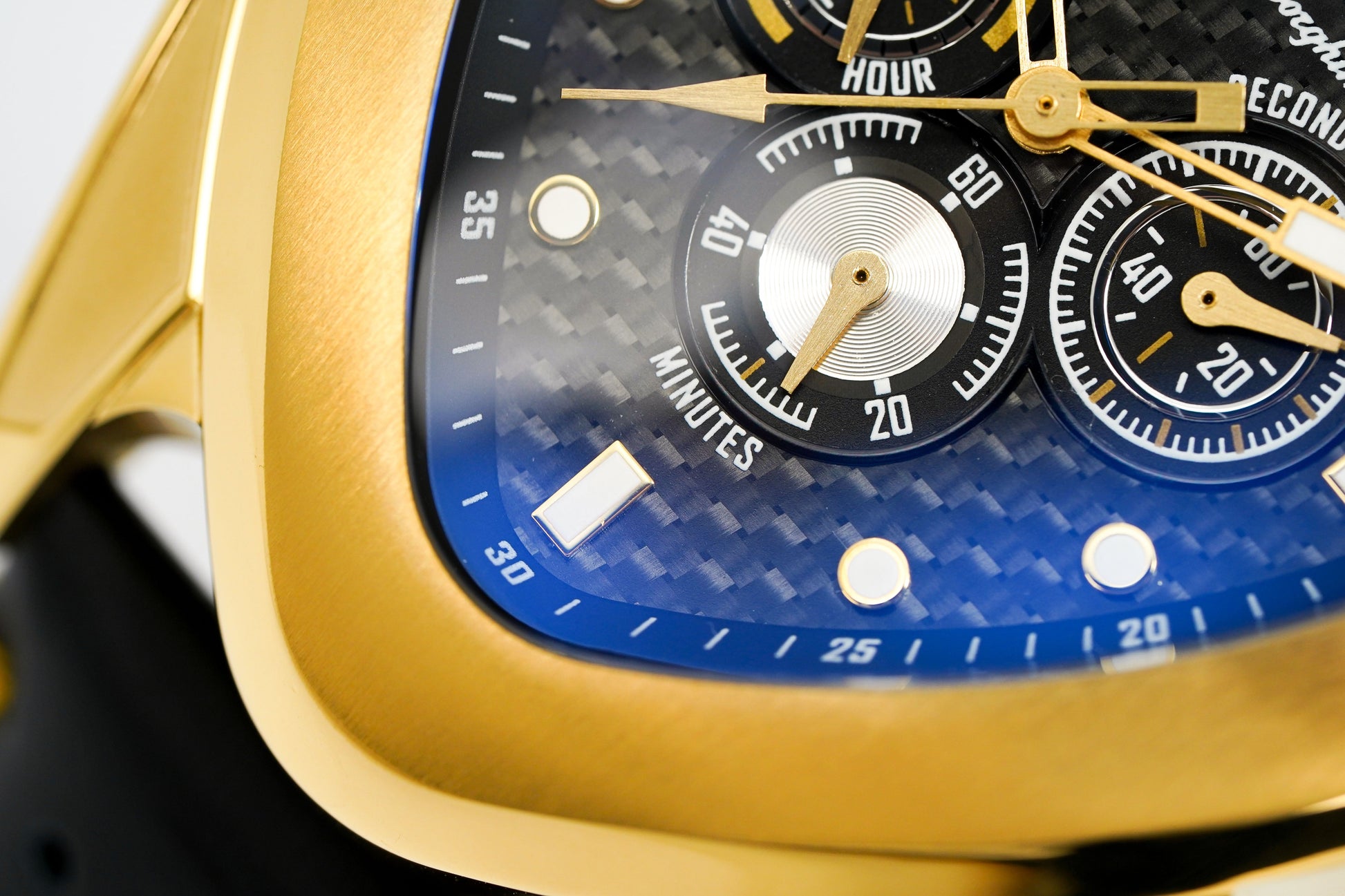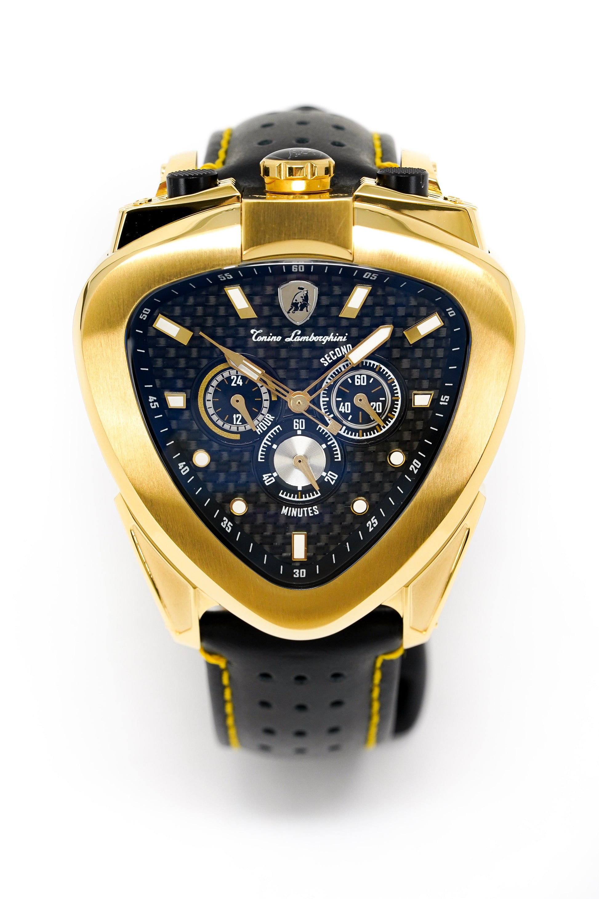 Black Carbon Fibre Textured Dial - Luminous IP Yellow Gold Stainless Steel Hands and White/Gold Hour Markers - Tonino Lamborghini Shield at 12 O'Clock - 3 Sub-Dials.