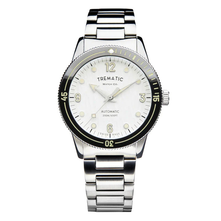 AC 14 dive watch, automatic movement Swiss Made Sellita SW 200-1 with polar white precision milled dial and tungsten bezel.