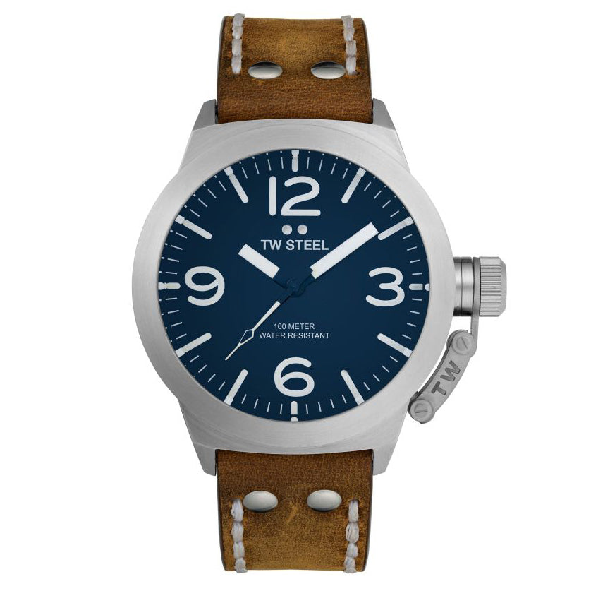 Brown Italian Leather Strap With White Stitching Stainless Steel Pin Buckle.
