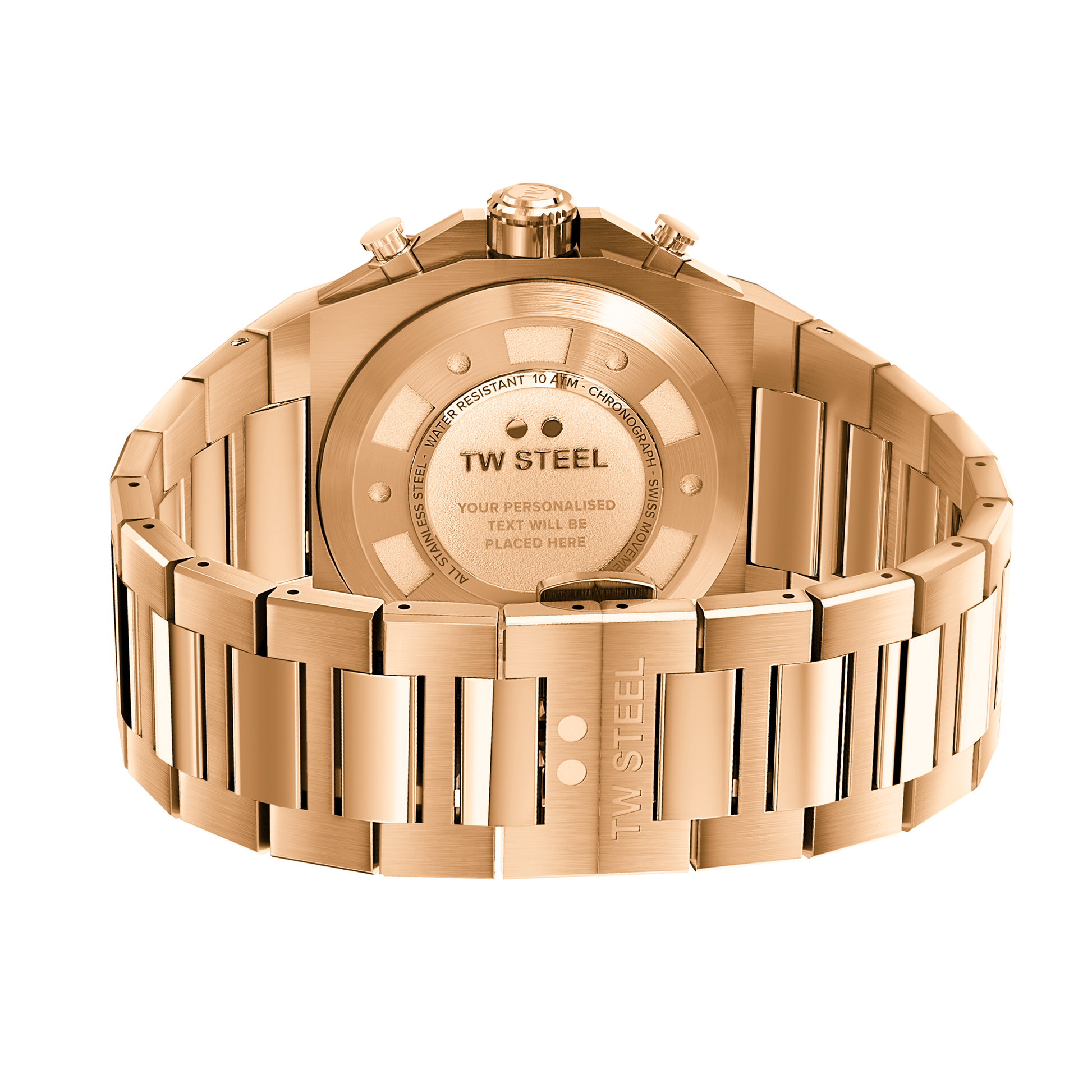 45mm 316L Brushed Rose Gold PVD Stainless Steel Case and Bezel with Polished Steel Accent Screws and Screw-Down Crown. Anti-Reflective Sapphire Crystal.