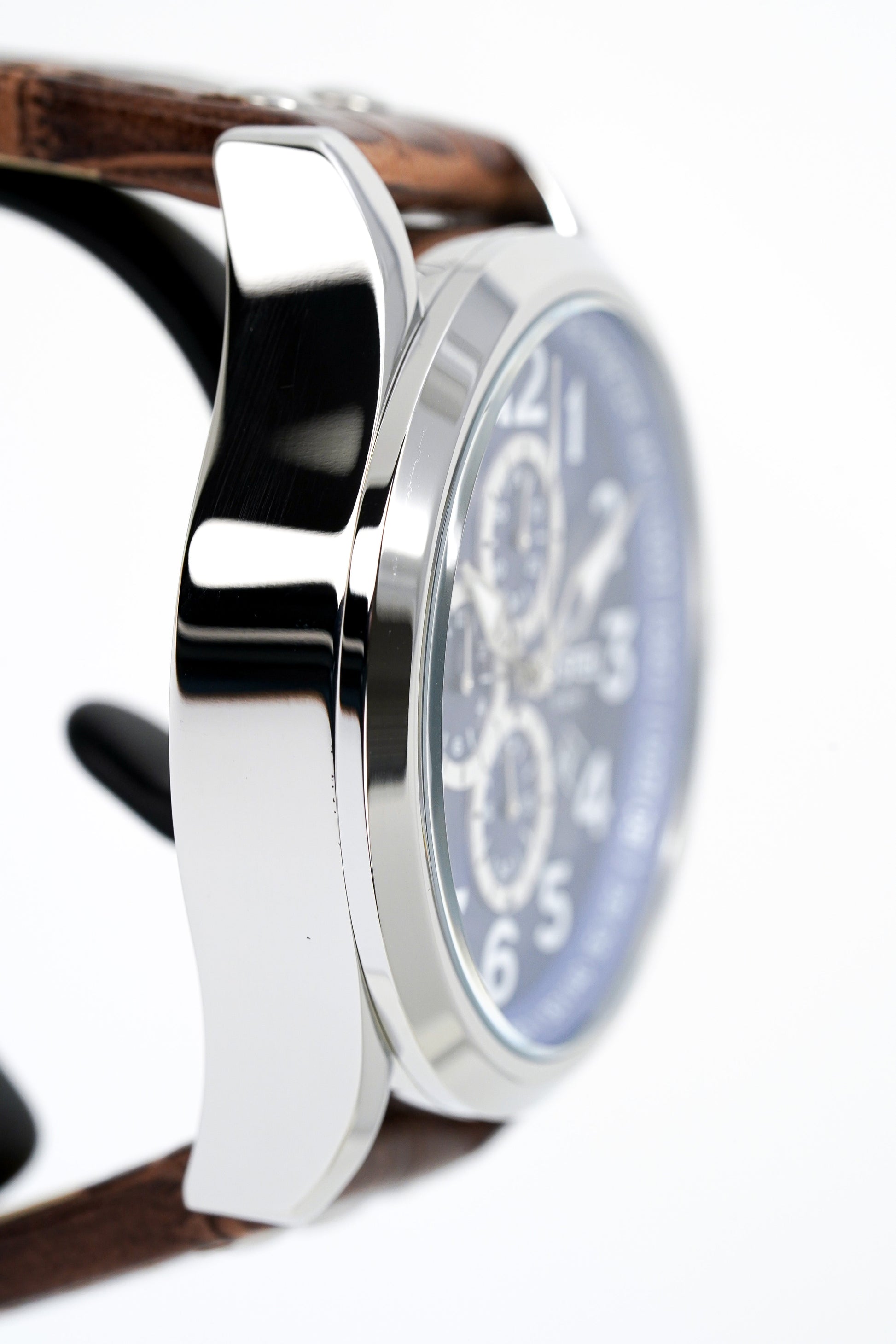 45mm 316L Polished Stainless Steel Case, Bezel, Screw-Down Crown and Pushers. Sapphire Coated Reinforced Crystal.