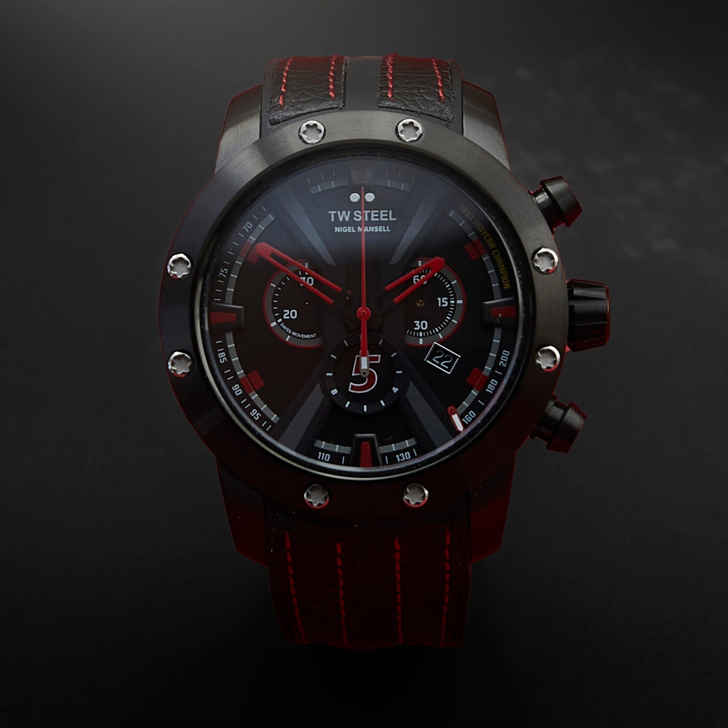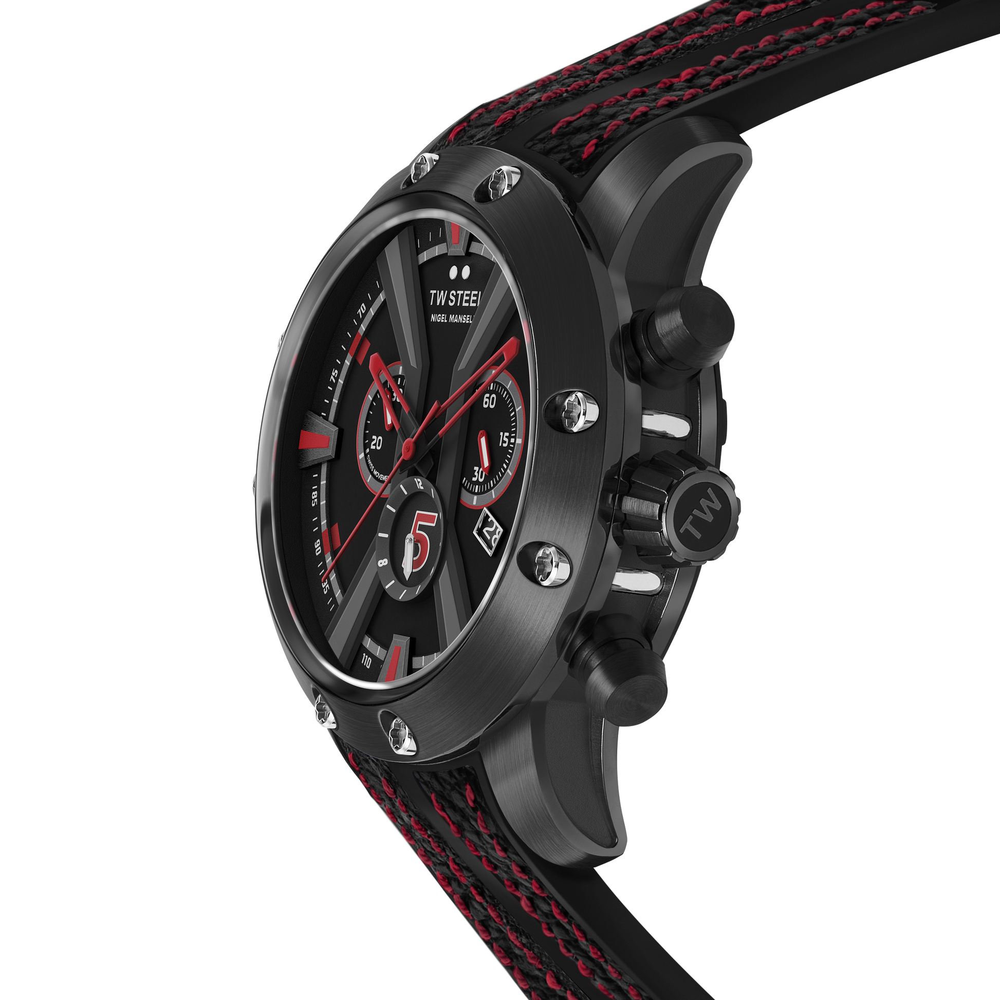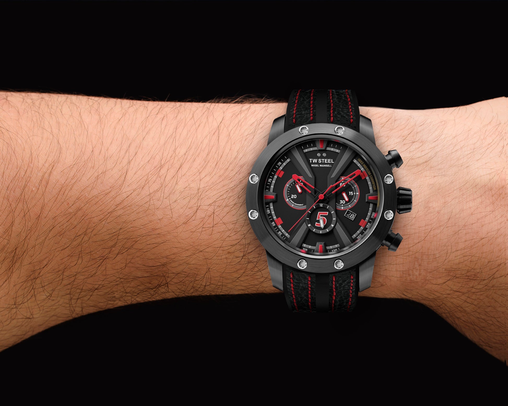 47mm 316L Black Plated Stainless Steel Case and Bezel, Anti-Reflective Sapphire Crystal, Screw-Down Crown and Nigel Mansell Personal Engraved Caseback.