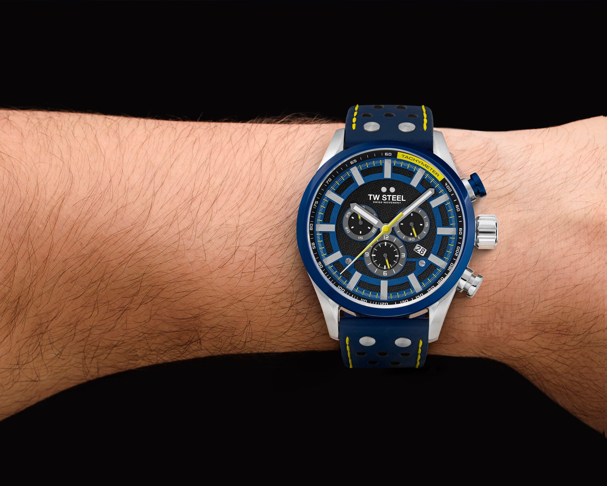 TW Steel Watch Men's Swiss Volante Chronograph Fast Lane Yellow Blue SVS208