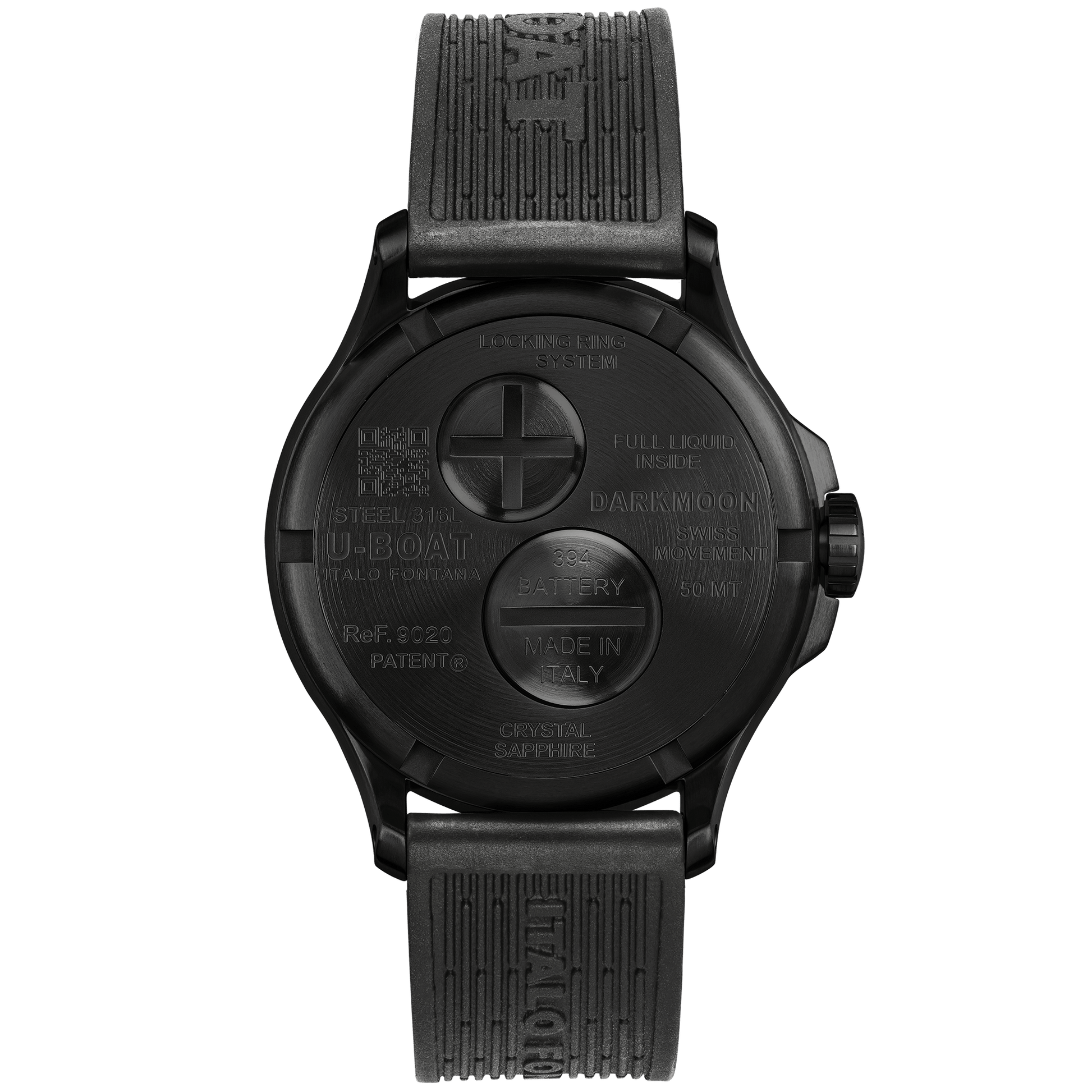 40mm x 15mm 316L Black PVD Stainless Steel Case Filled with a special Oil which emphasises and improves legibility on the dial. High Quality Domed Sapphire Crystal Glass with Anti-Reflection Treatment. Innovative Locking System with Quick Battery Replacement. Screwed In, 316L Stainless Steel case back