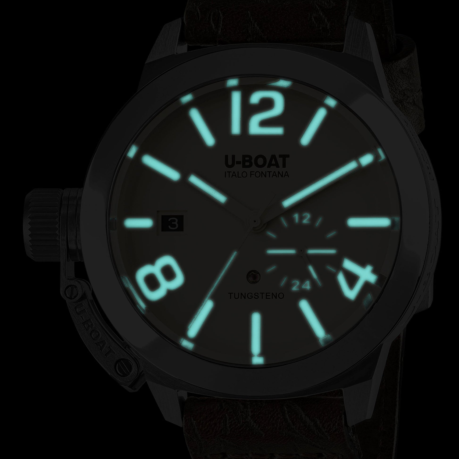 - Movement: Swiss automatic winding with U-BOAT technical specifications. Frequency: 28,800 vibrations/hour. Power reserve: 41 hours. 26 rubies. Custom skeletonized rotor.