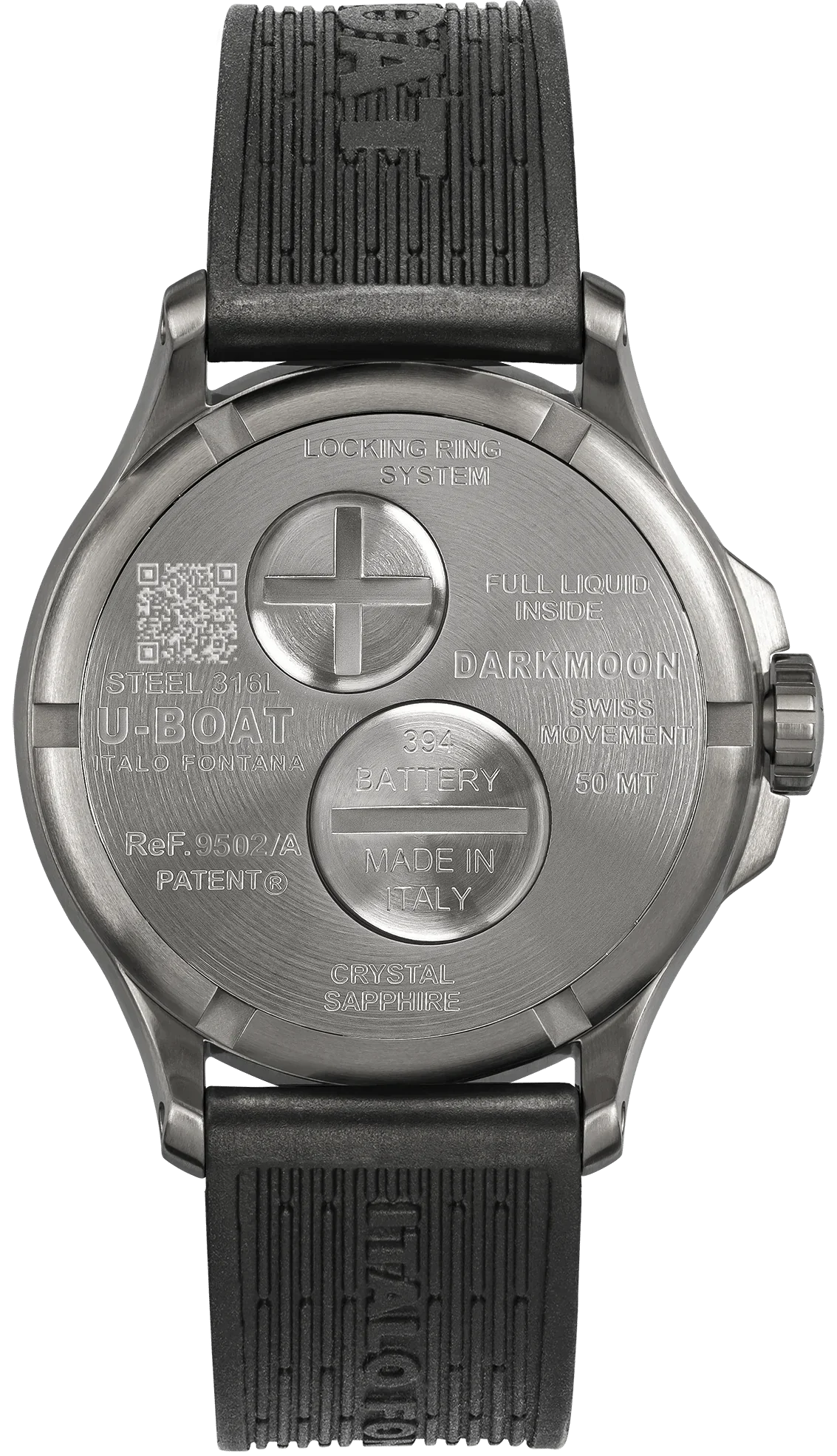 40mm x 15mm 316L Stainless Steel Case Filled with a special Oil which emphasises and improves legibility on the dial. High Quality Domed Sapphire Crystal Glass with Anti-Reflection Treatment. Innovative Locking System with Quick Battery Replacement. Screwed In, 316L Stainless Steel case back
