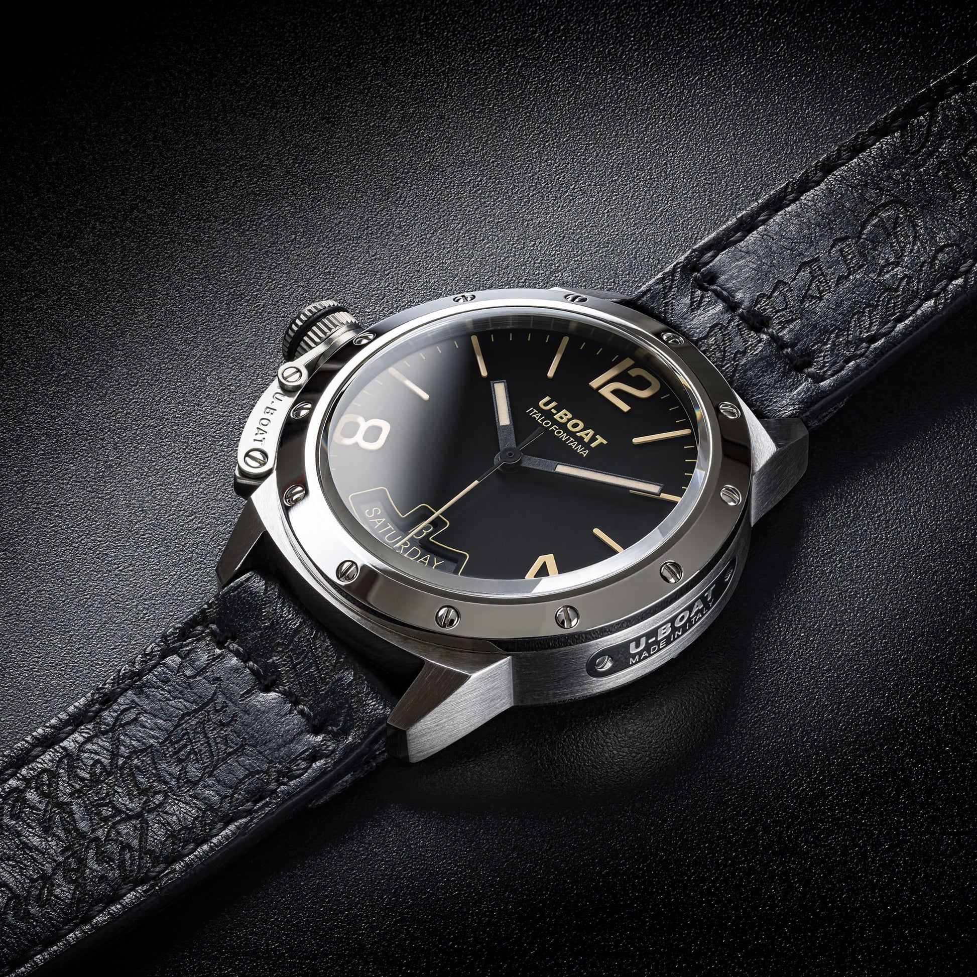 - Movement: Swiss automatic winding with U-BOAT technical specifications. Frequency: 28,800 vibrations/hour. Power reserve: 44 hours. 26 rubies. Custom skeletonized rotor.