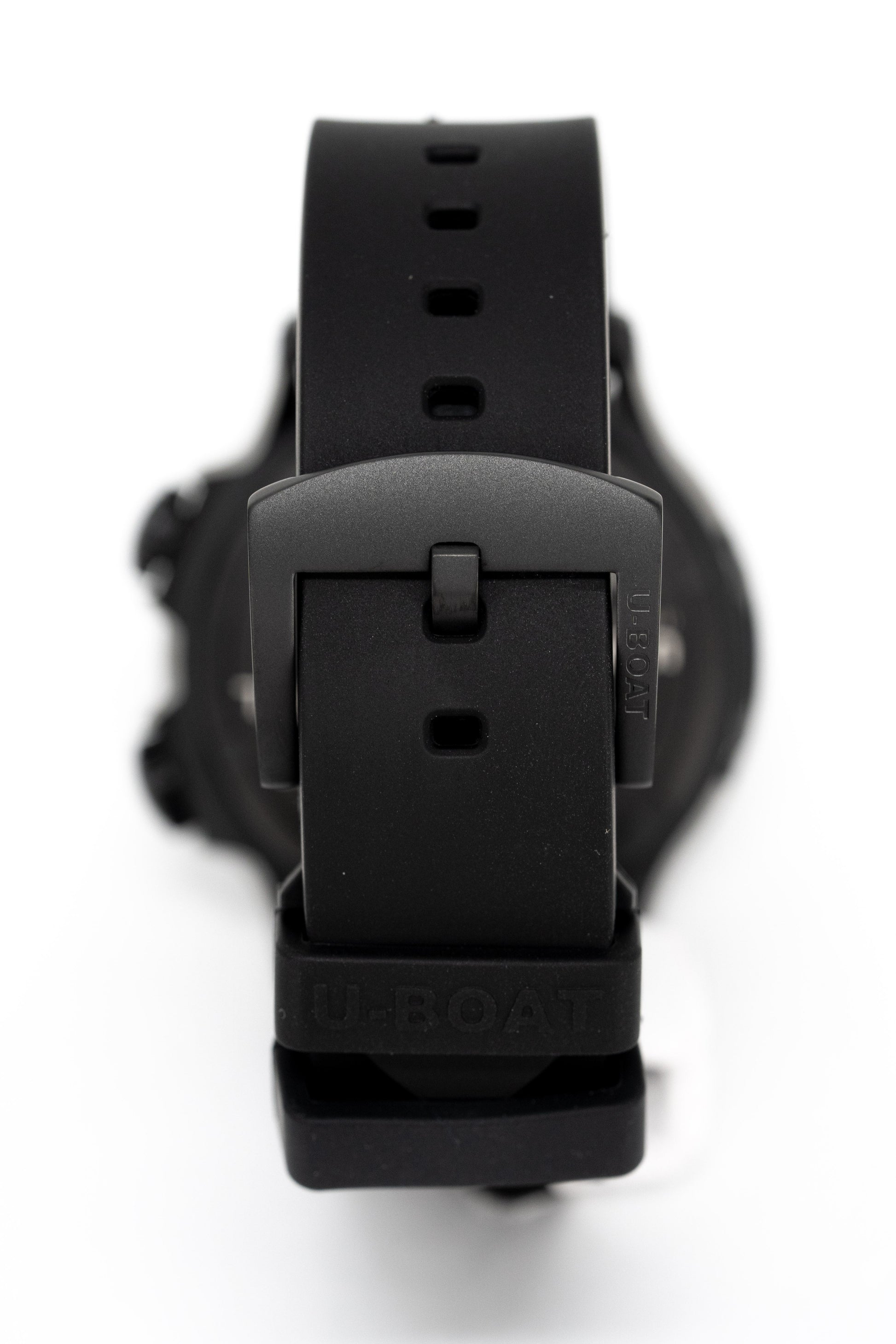 22mm x 20cm Black Vulcanised Rubber Strap with U-BOAT Logo - 316L Stainless Steel Buckle