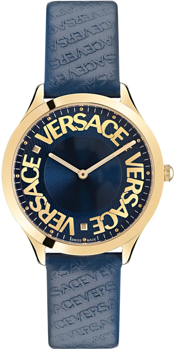 Dial: Blue Sunray Dial with Gold Applied Versace Halo Logo - Gold Plated Stainless Steel Luminous Hour and Minute Hands.