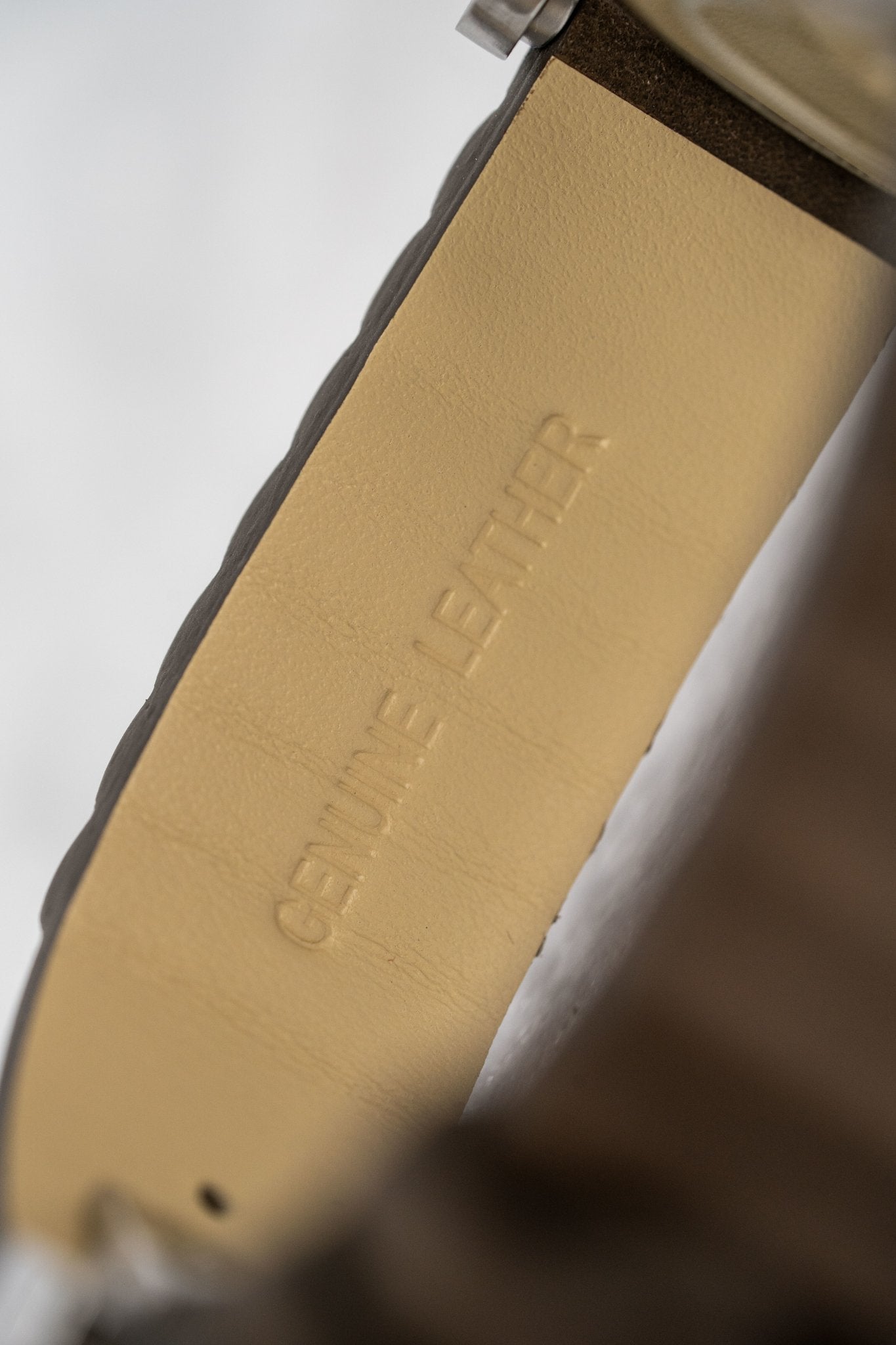 Strap / Bracelet: 18mm x 19cm Brown Leather Strap with 316L Stainless Steel Deployment Buckle