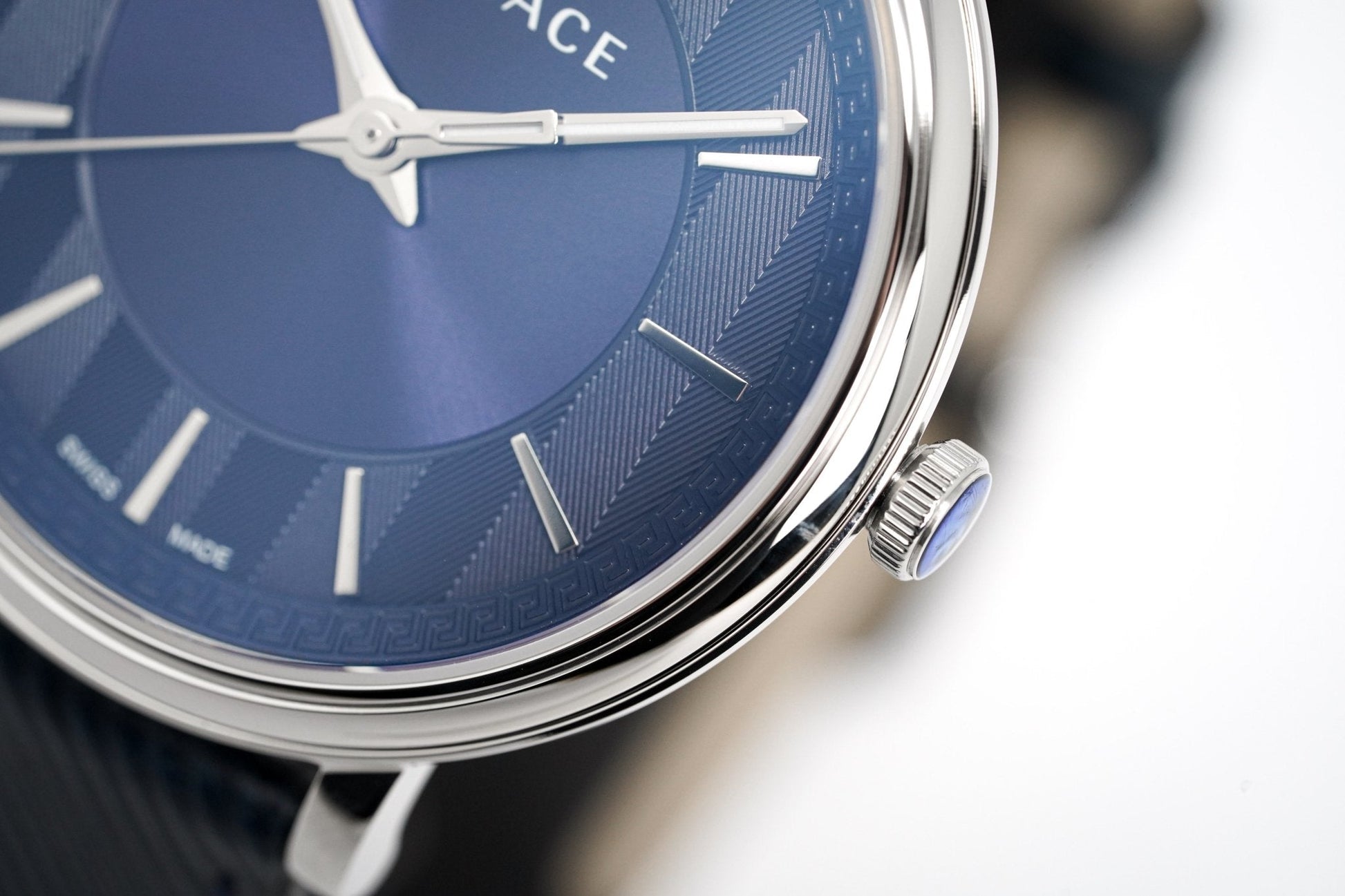 Dial: Blue Sunray Dial - Luminous Stainless Steel Hands and Hour Indexes - Medusa Head at 12.
