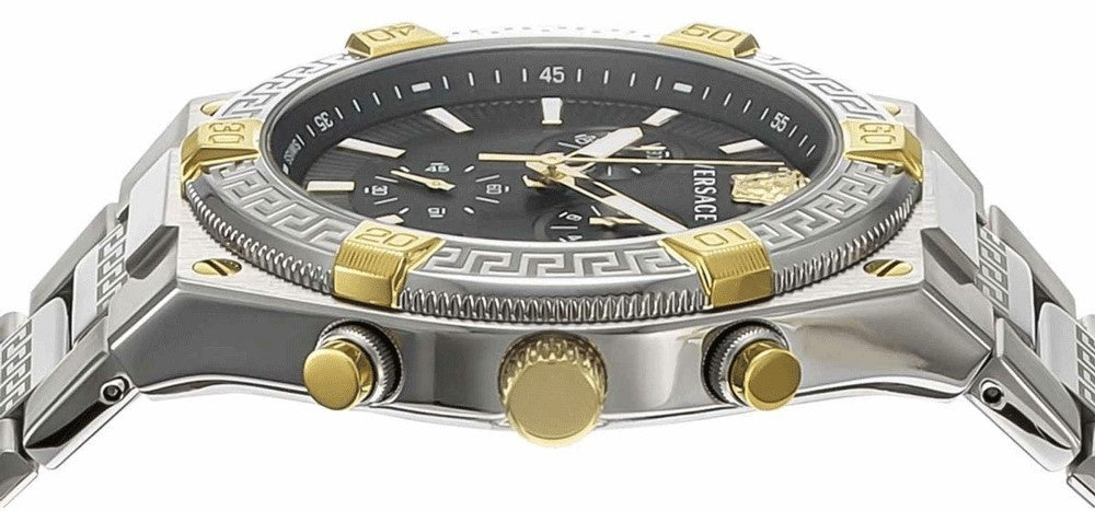 Versace Men's Watch Greca Sporty Chronograph 46mm Black Silver VESO01123