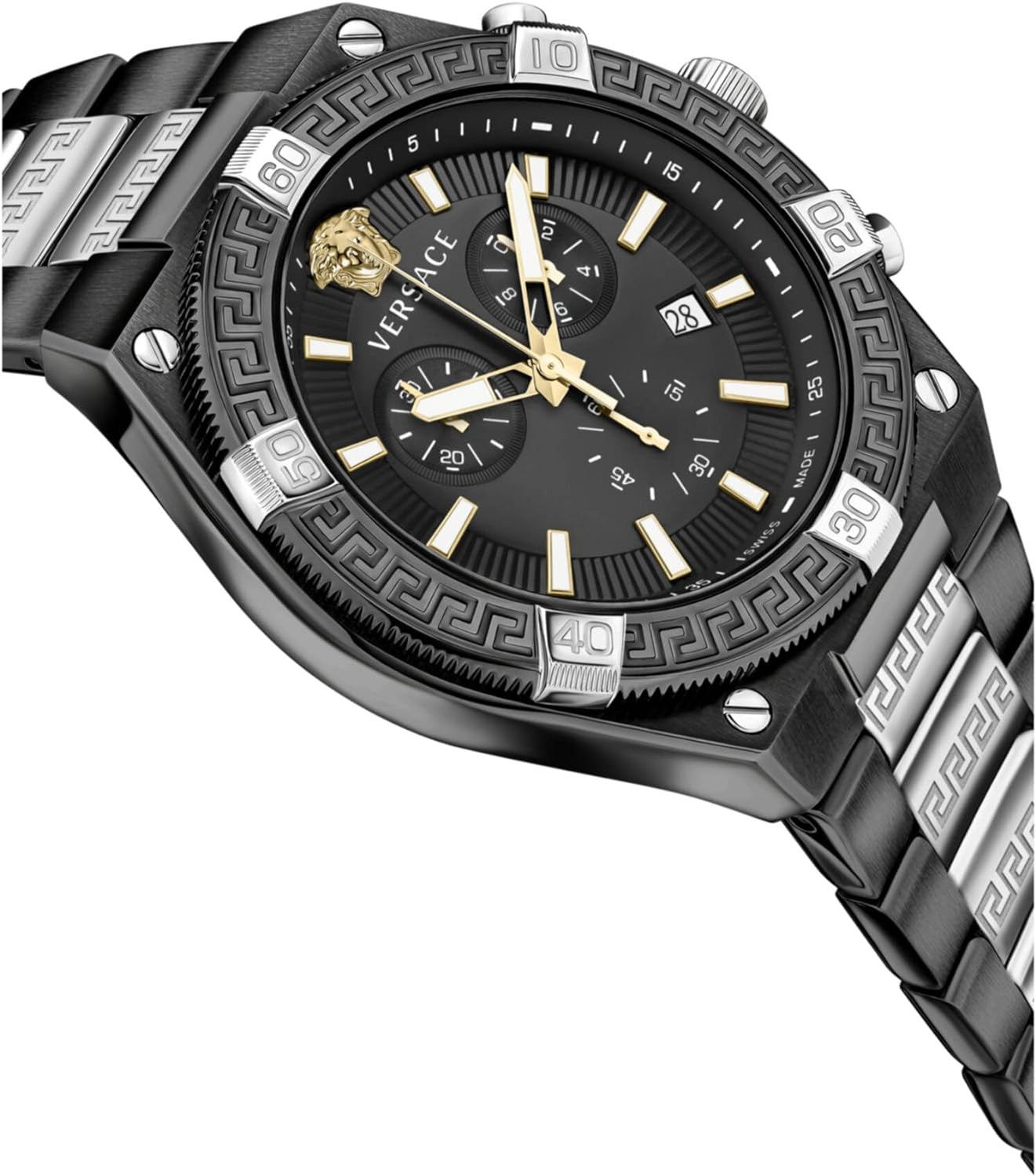 Versace Men's Watch Greca Sporty Chronograph 46mm Black Silver VESO01022
