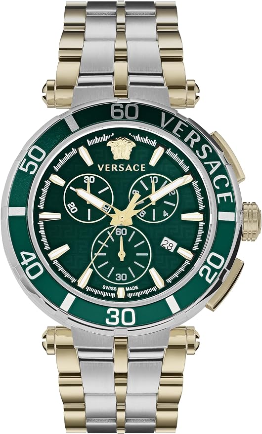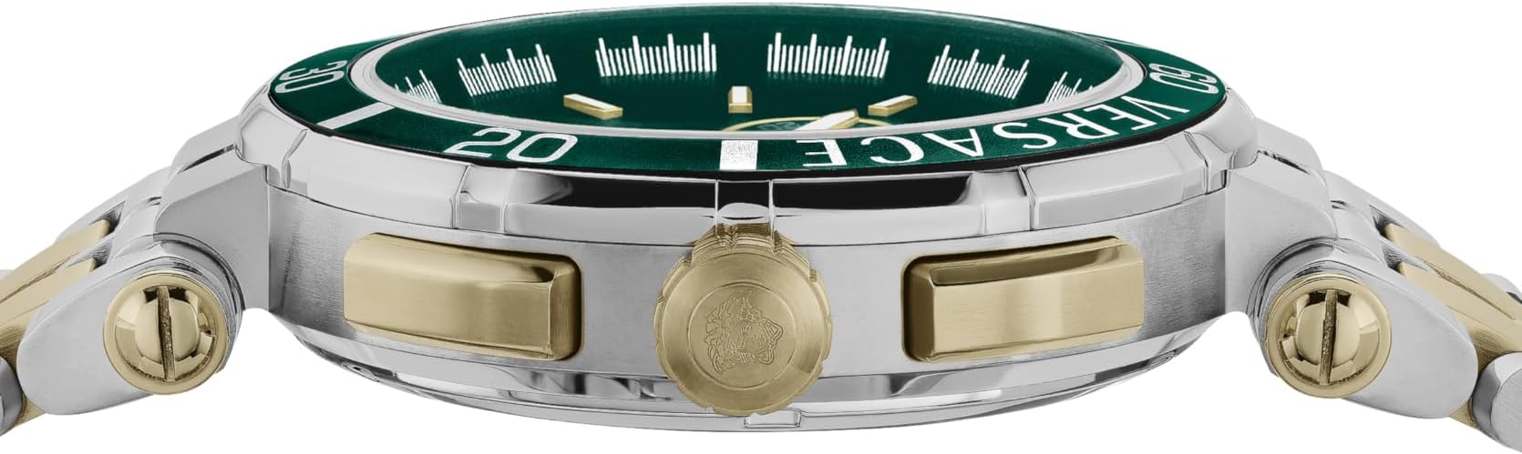 Dial: Green Dial - Stainless Steel Applied Luminous Markers and Hands - Date Window at 4 O'Clock - Green Sub-Dials - Versace Medusa Logo at 12 O'Clock