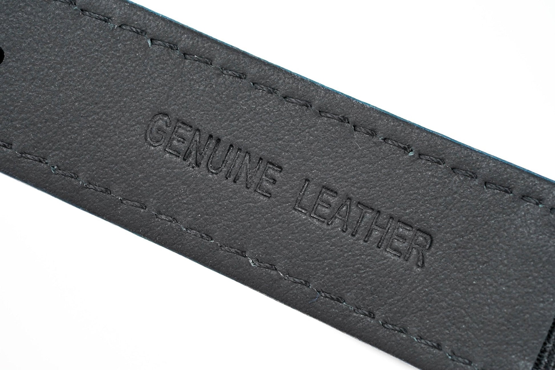 Strap / Bracelet: 20mm Lug Width Blue Leather Strap with Black Fabric Centre -316L Stainless Steel Pin Buckle.