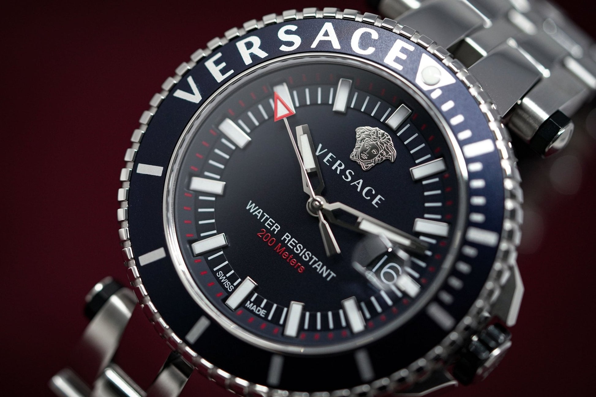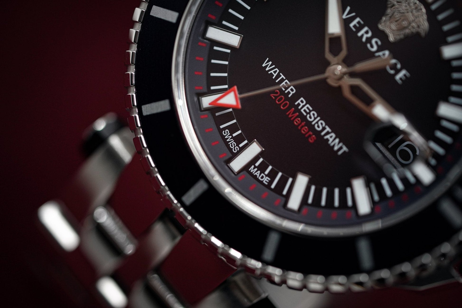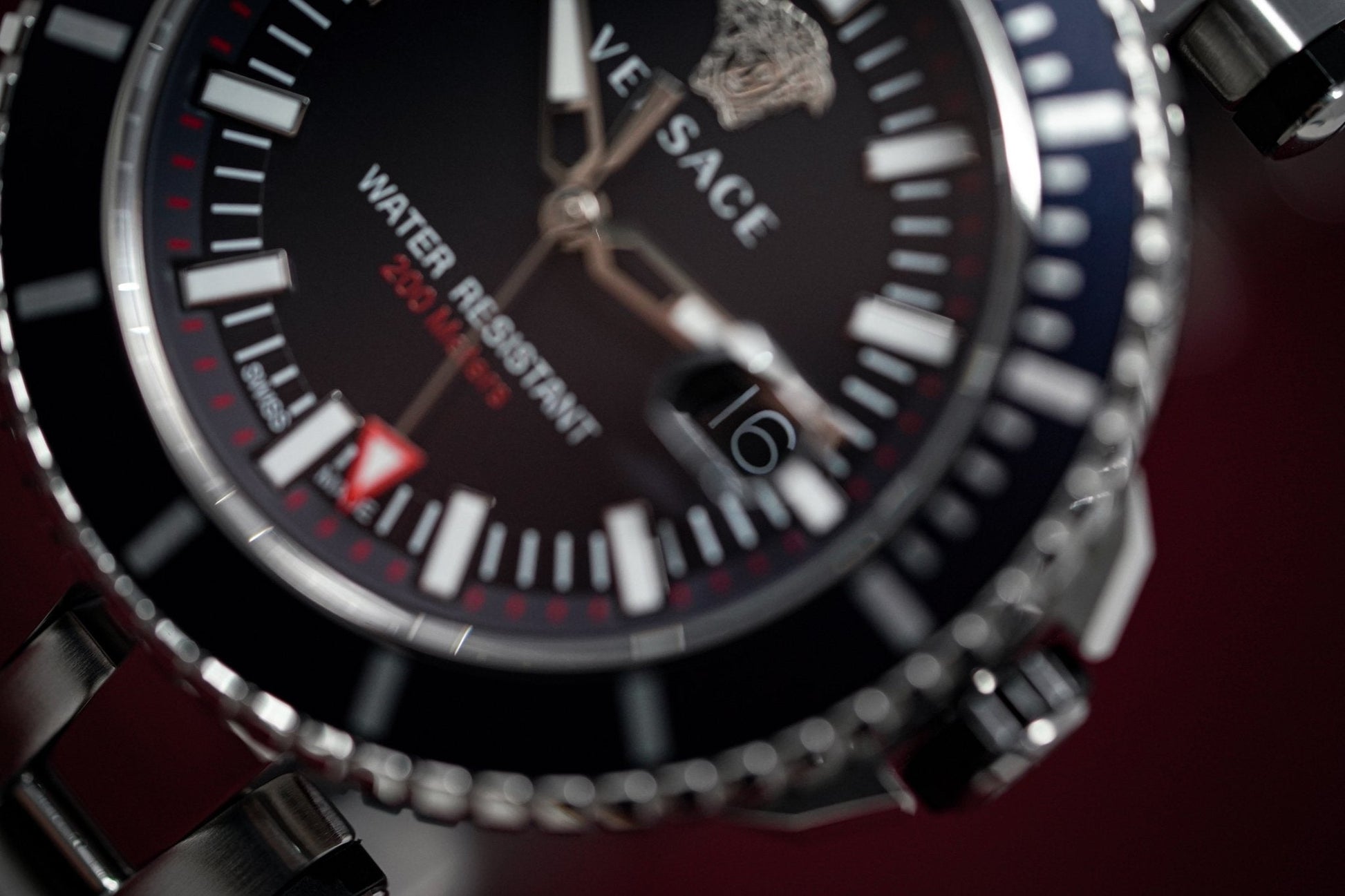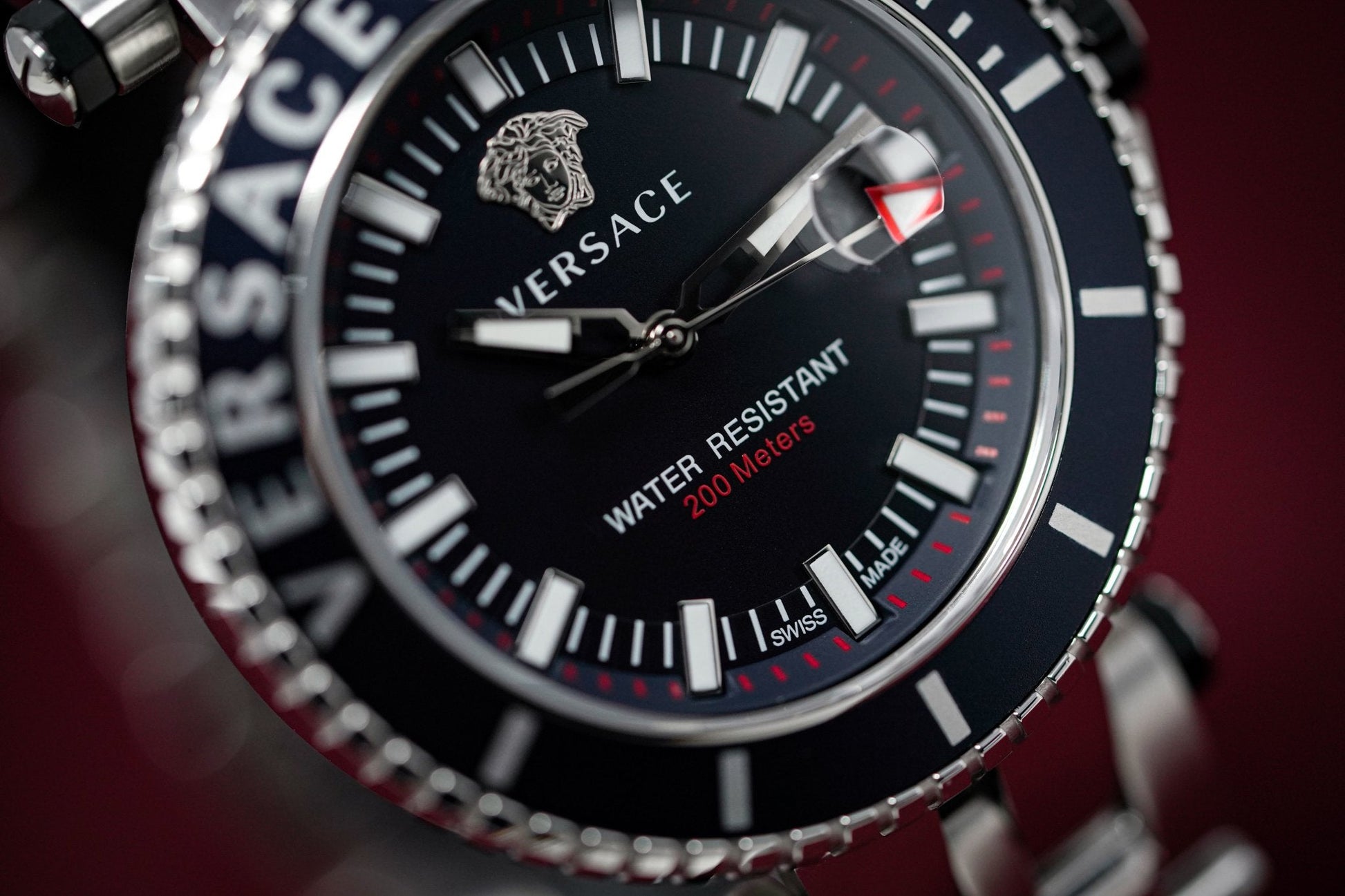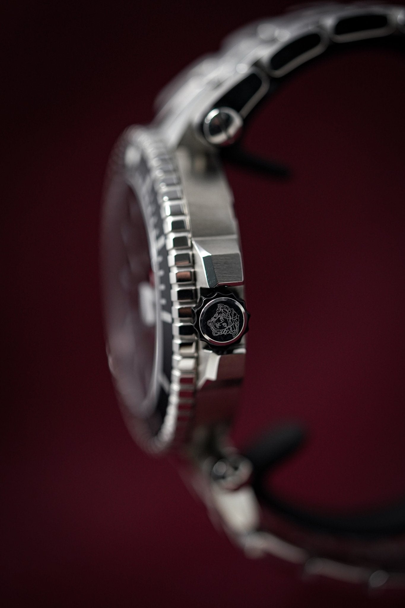 46 mm X 12 mm Stainless Steel Case with Versace Black Bezel