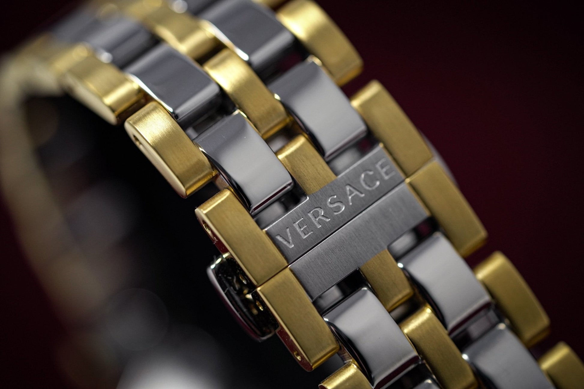 46 mm X 12 mm 316L Stainless Steel Case with IP Gold Plated Bezel.