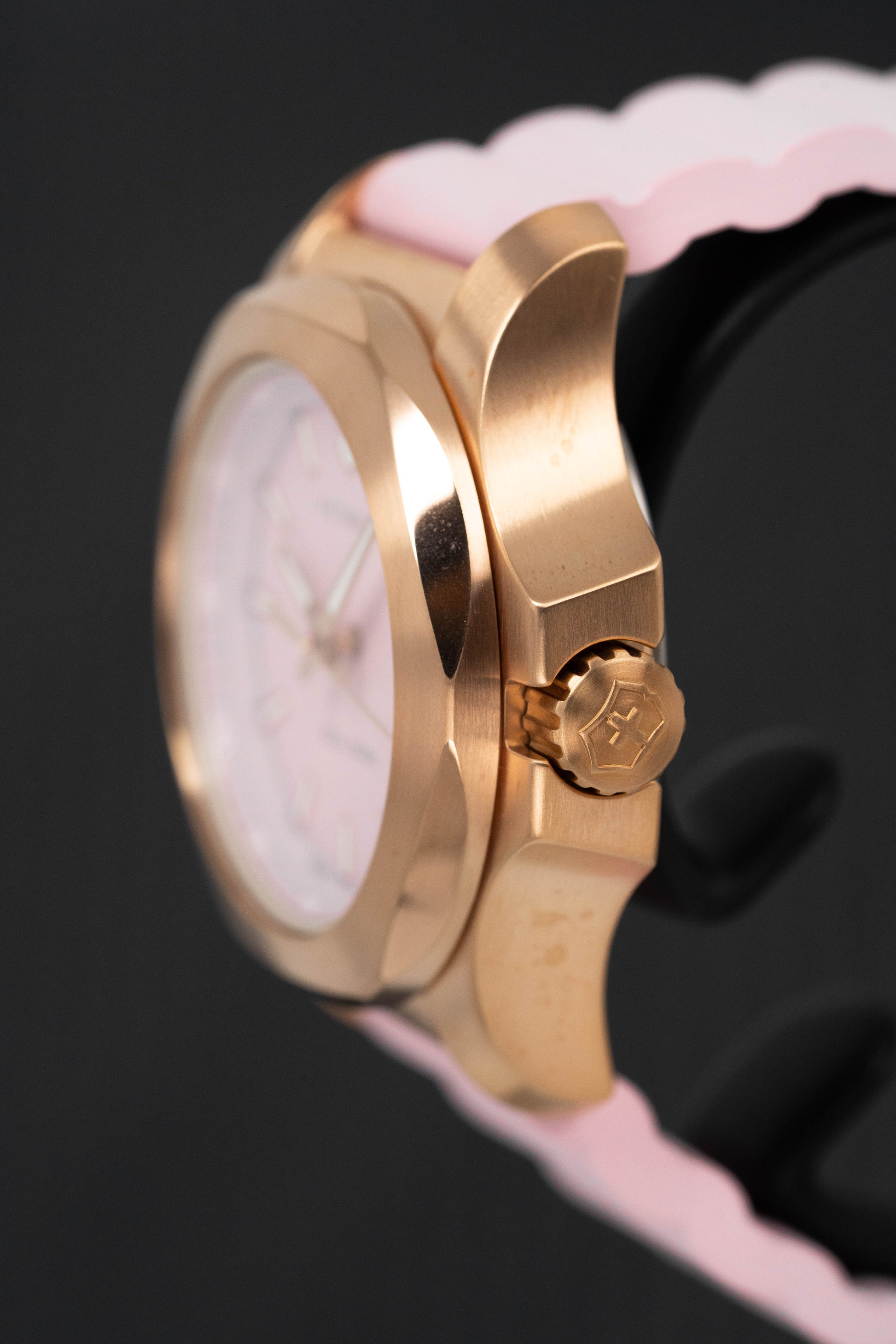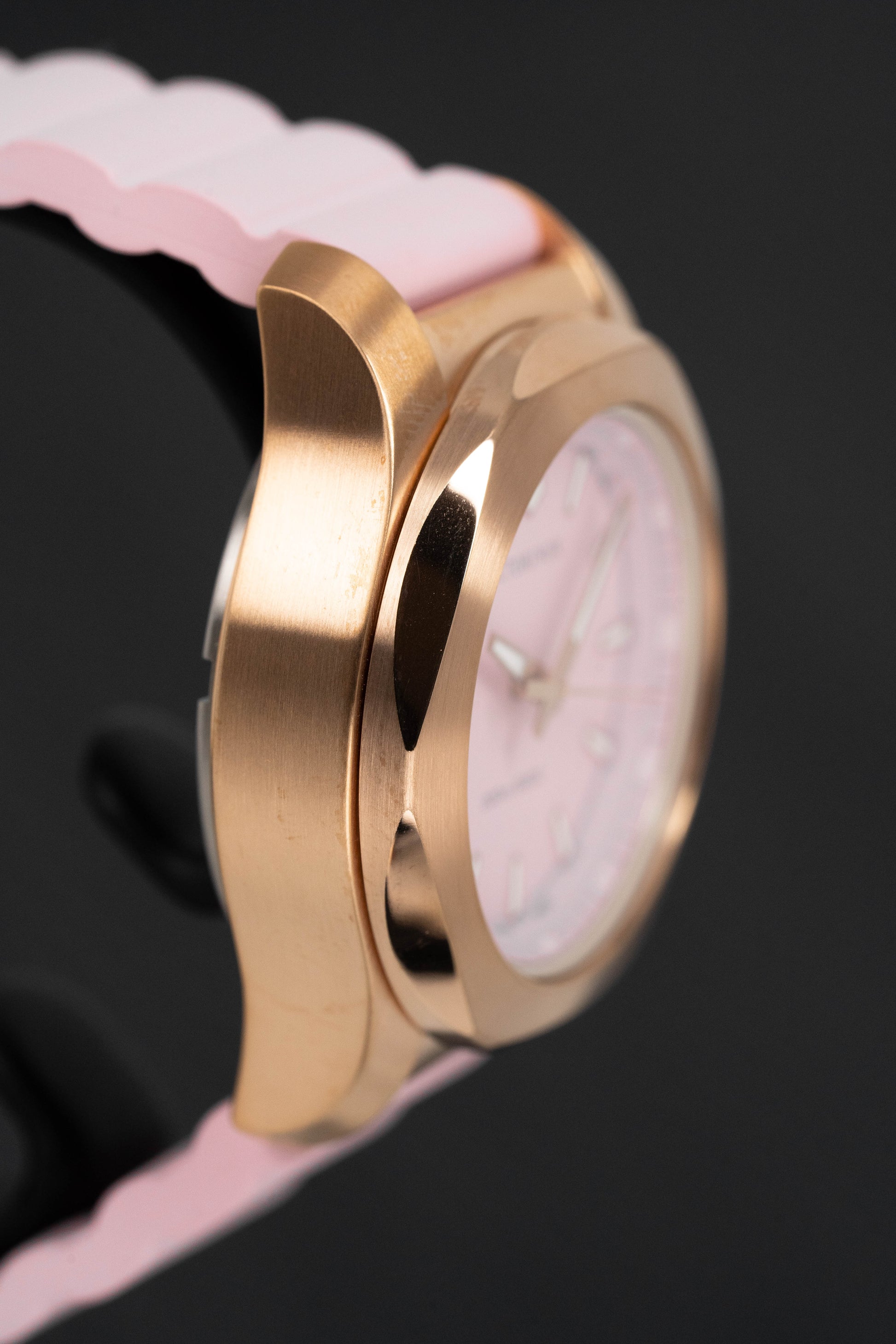 Pink Dial - Super-LumiNova® Hour Indexes - Super-LumiNova® Rose Gold/white Hour and Minute Hands - Polished Rose Gold Applied Seconds Hand.