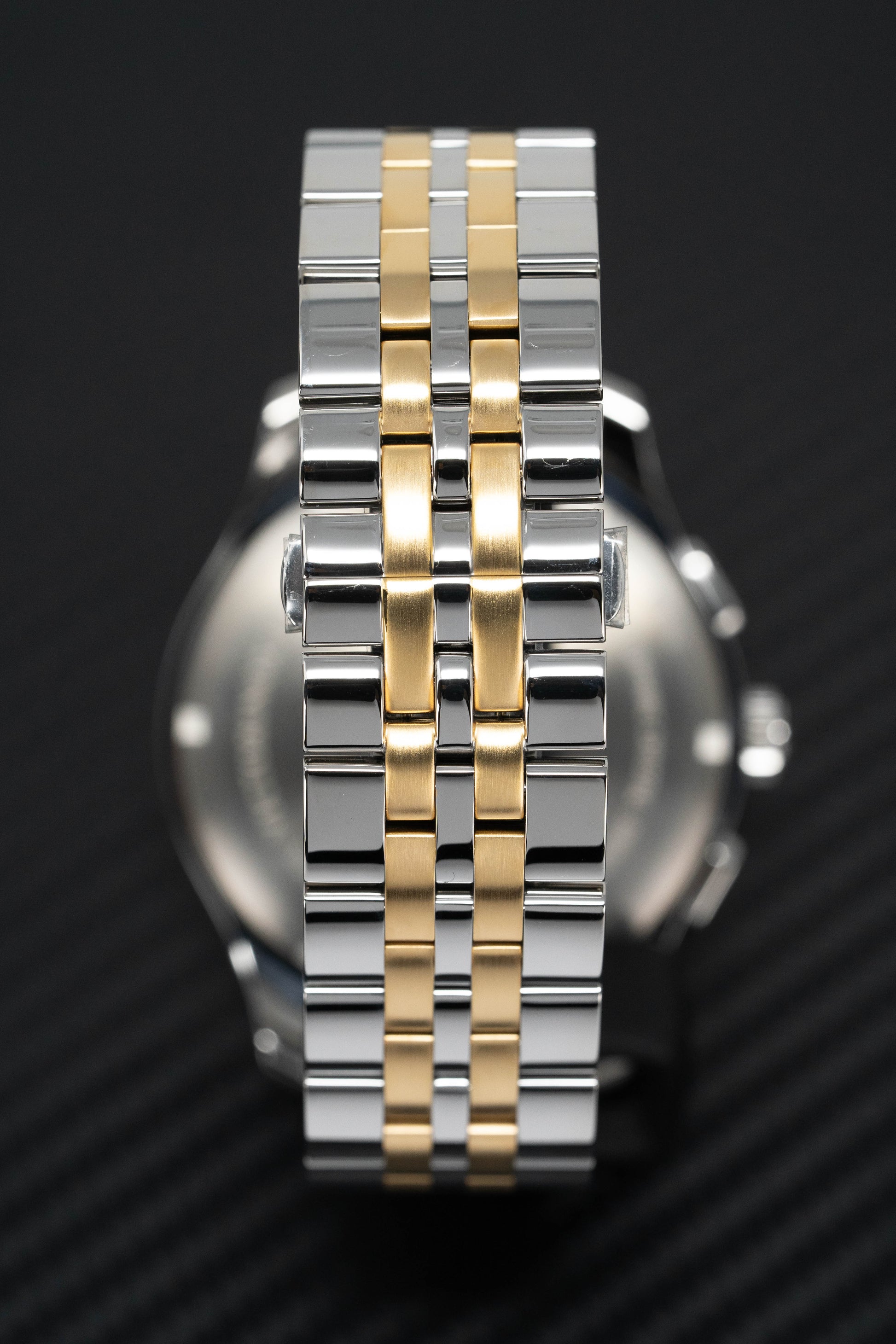 20mm Width Two-Tone Gold PVD 316L Stainless Steel Bracelet with Push Button Deployment Clasp.