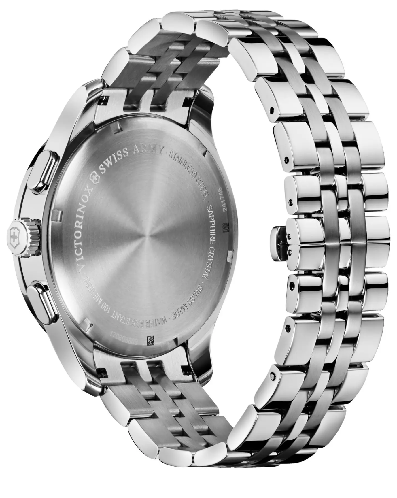 44mm x 10mm 316L Stainless Steel Case - Chronograph Functions - Scratch-Resistant and Anti-Reflective Sapphire Crystal - Push/Pull Crown - Fixed Bezel - Solid Back case.