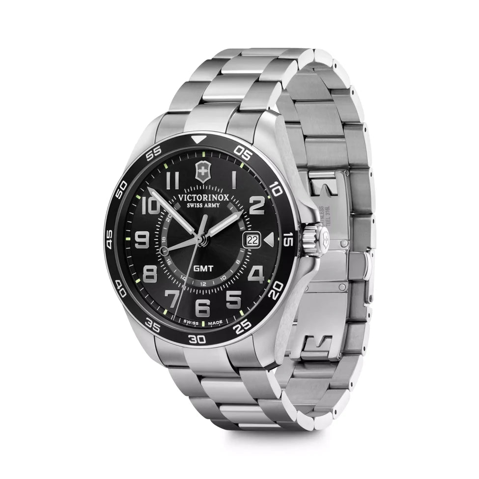 Step into the realm of bold masculinity and luxury innovation with the FieldForce Classic GMT. This Swiss-made timepiece embodies superior functionality and standout design, perfect for the modern explorer. Equipped with a GMT function, it effortlessly tracks two time zones simultaneously and independently, ensuring accuracy wherever your adventures take you. With its sleek sunray brushed finish dial and curved numerals, readability is always at its peak.