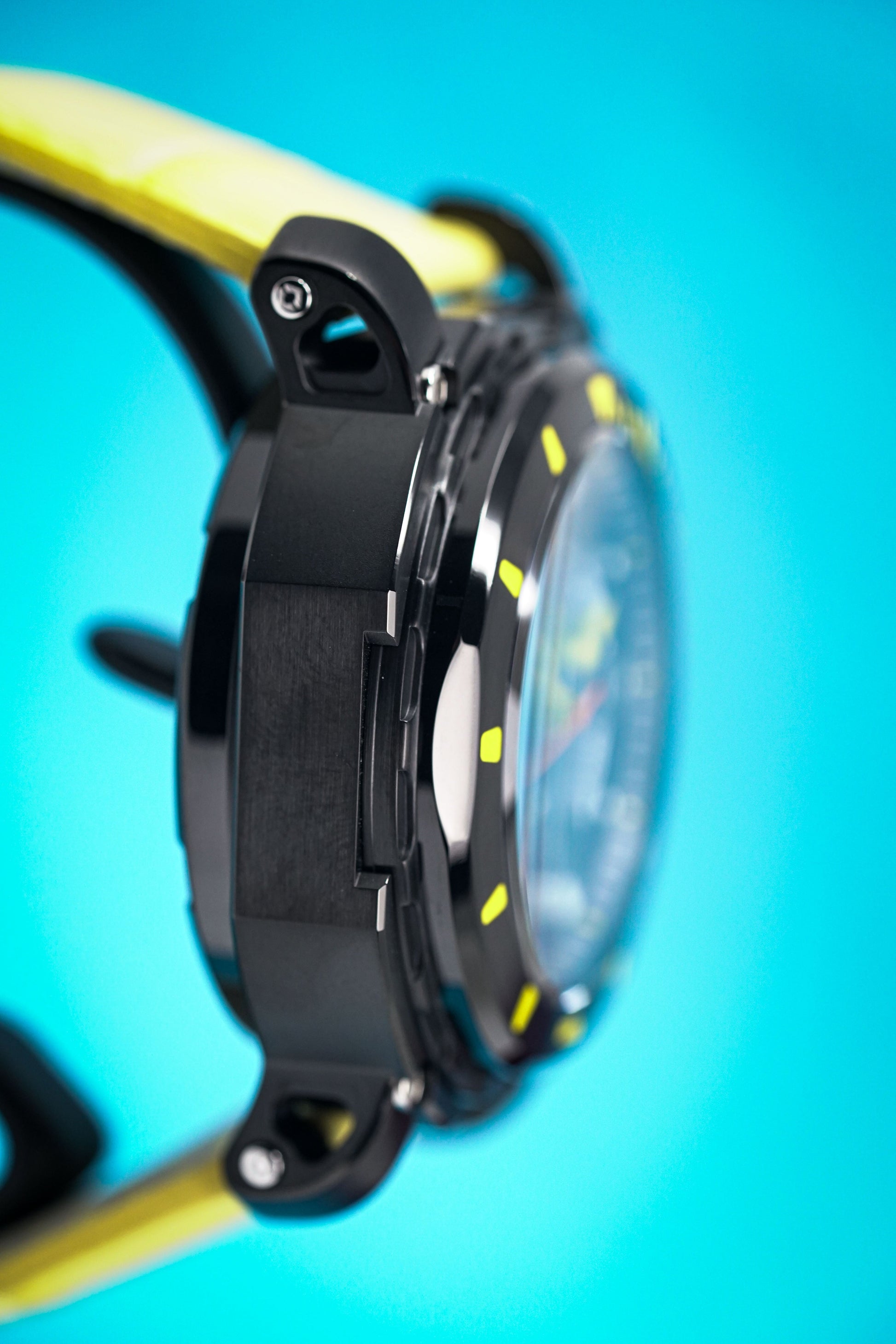 45mm x 18mm Black PVD 316L Stainless Steel Case - Solid Caseback - Screw Down Crown - Flat Convex Sapphire Crystal - Rotating Bezel.